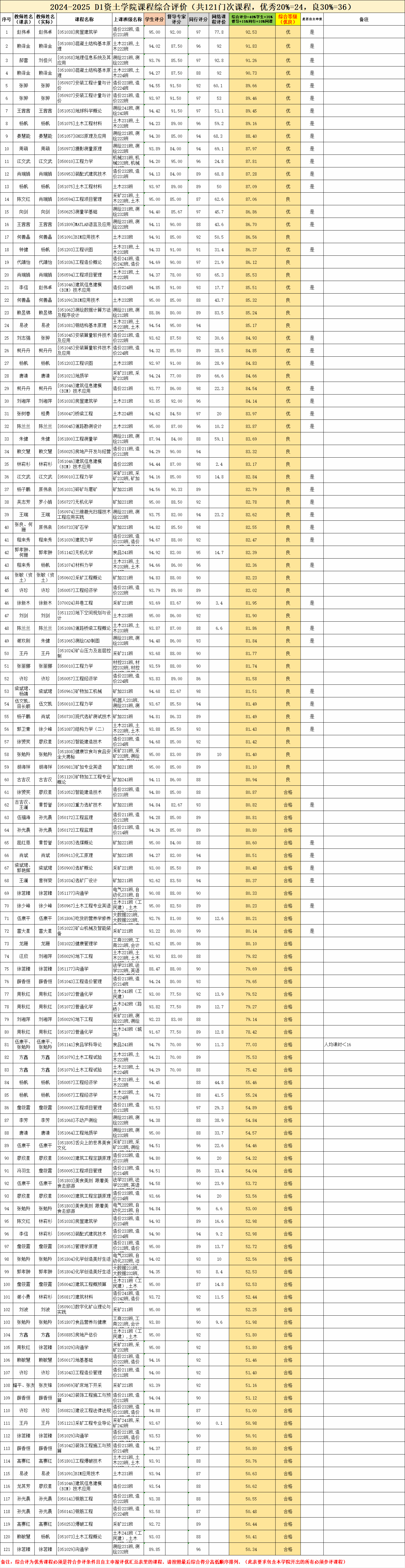 金年会jinnianhuicom2024-2025第一学期课程教学效果评价优良课程公示
