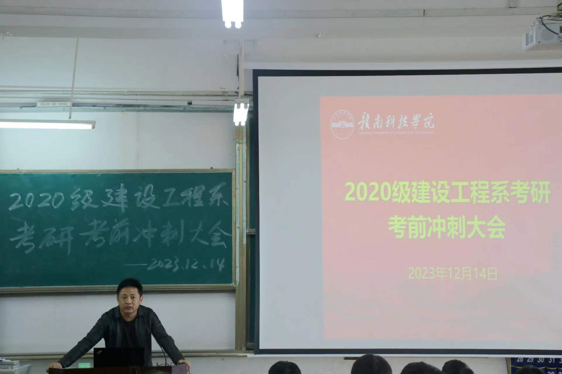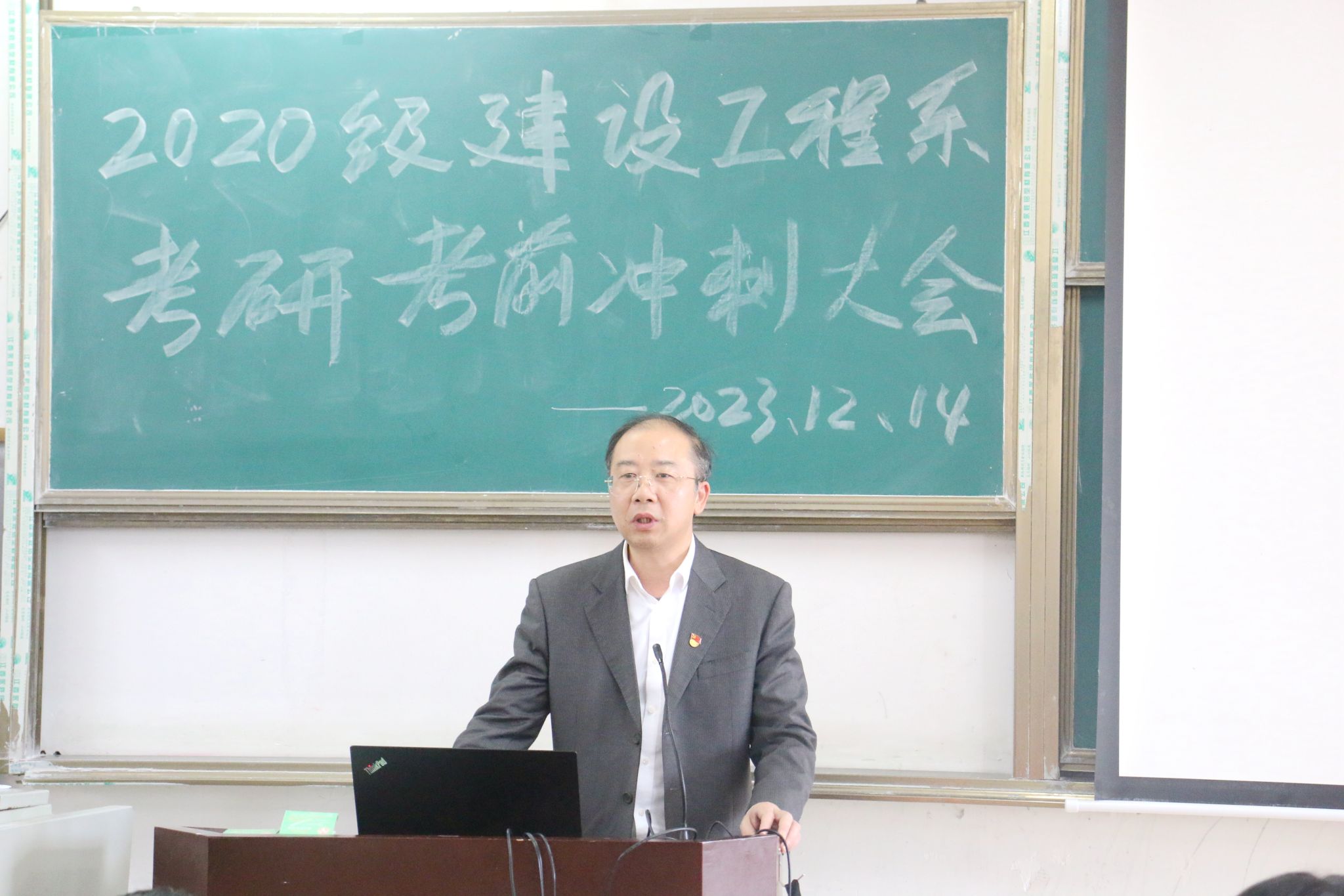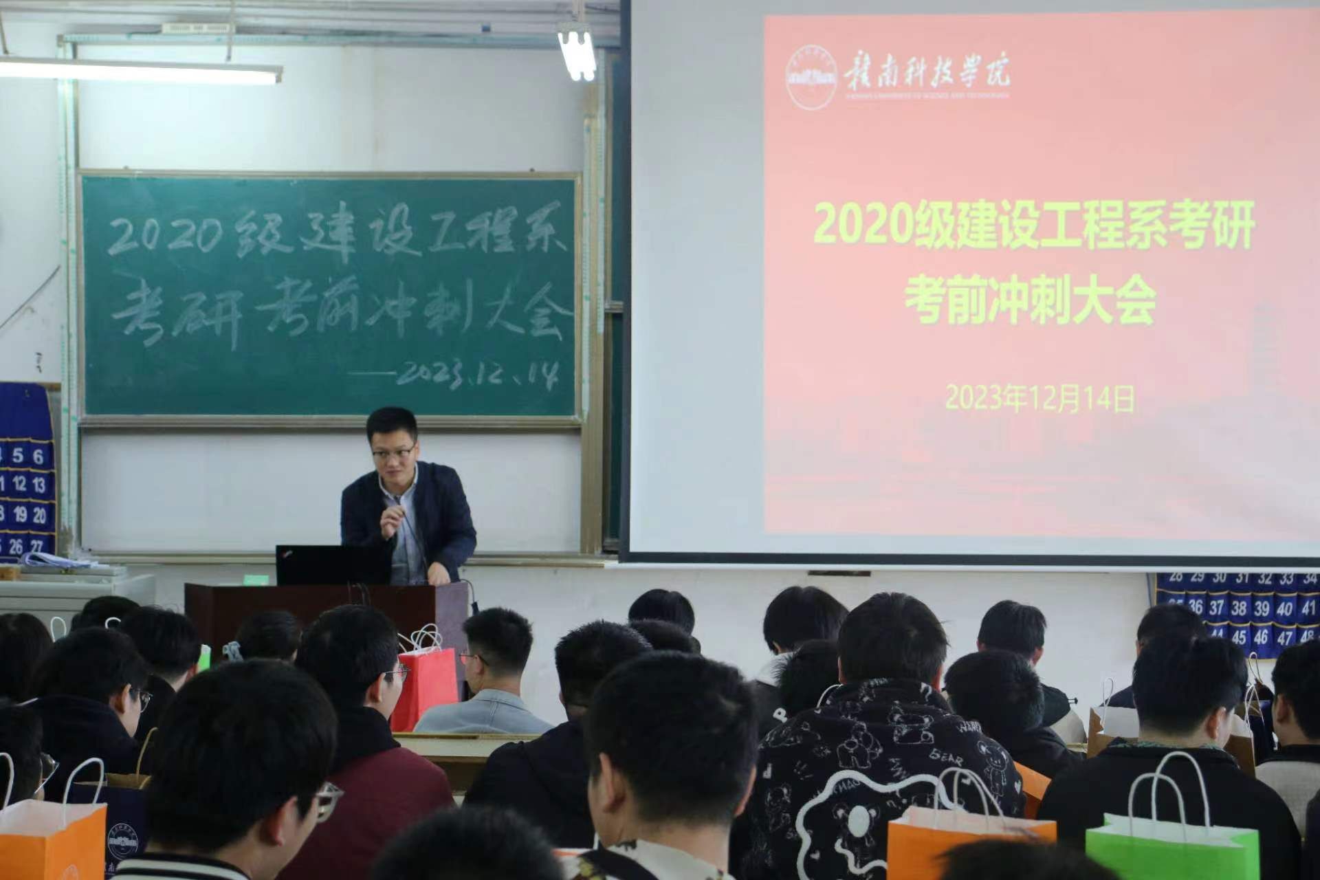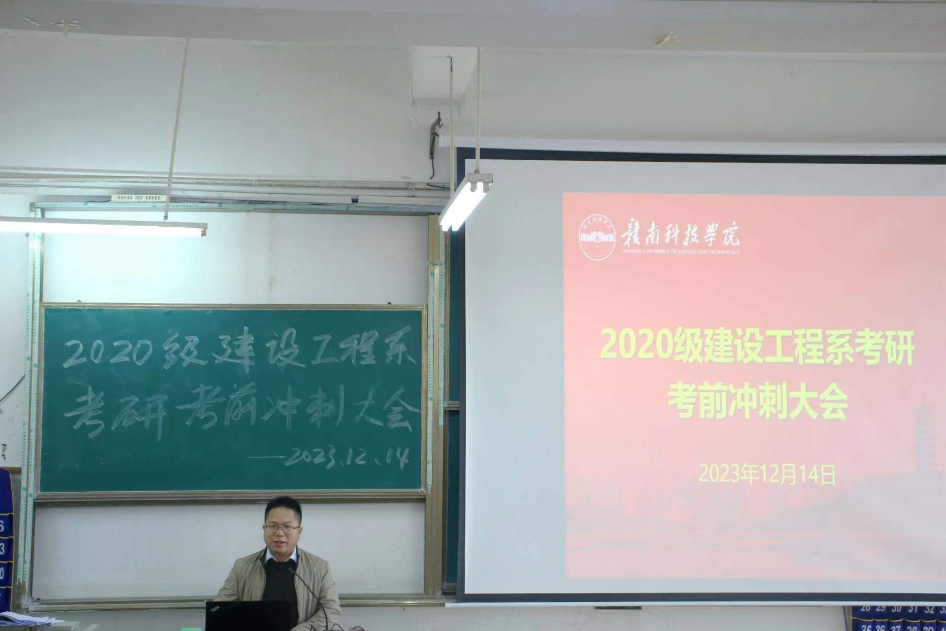 本网讯:2020级国家硕士研究生考试开考在即,为鼓舞考研士气,缓解备考压力,12月14日下午,建设工程系于Z1D1召开2020级考研冲刺大会。金年会jinnianhuicom党委书记刘俊峰、系领导班子卢志刚、代靖怡、涂黎明,辅导员徐新木、刘波及考研学子们参加本次大会。