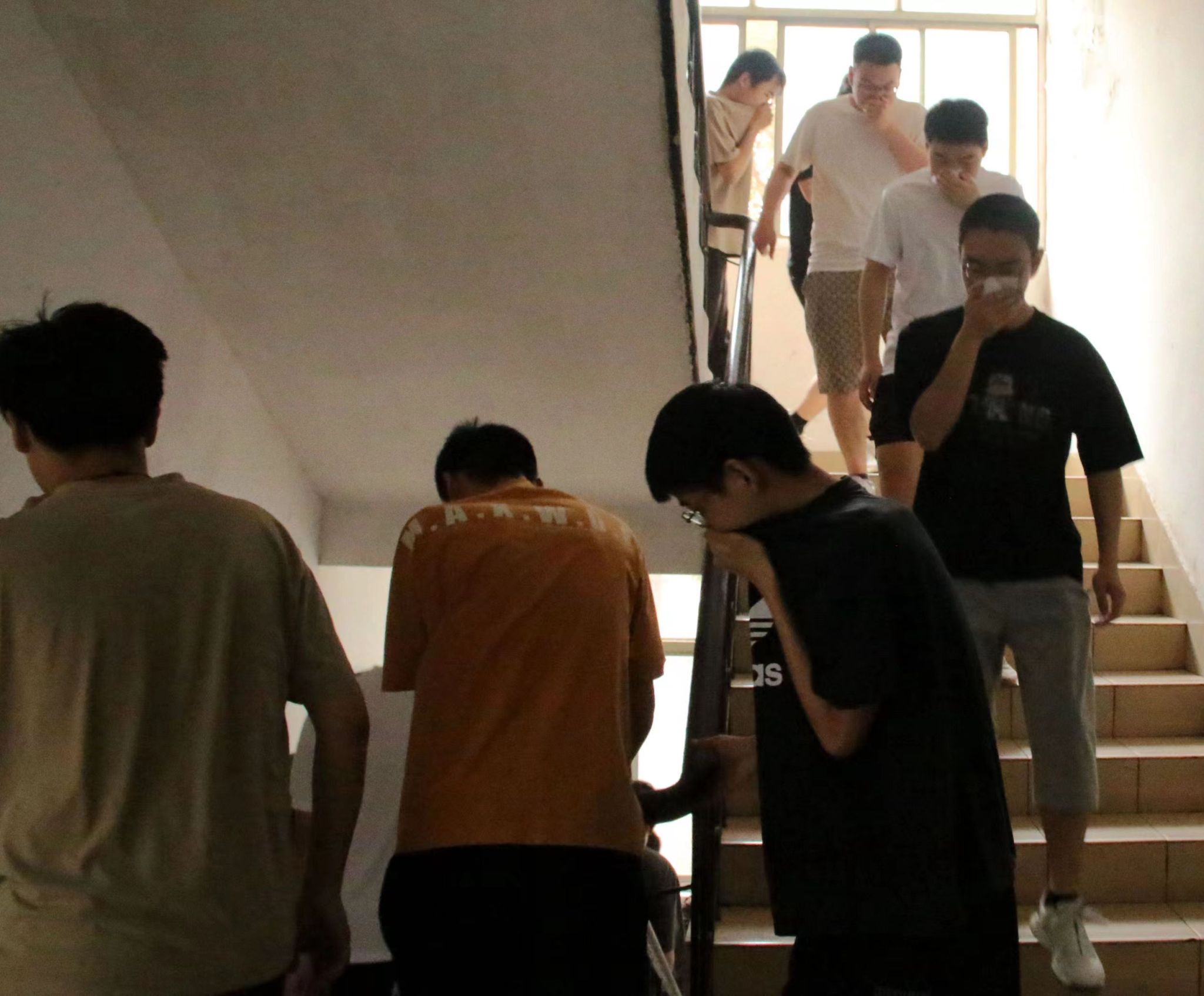开展进行消防应急疏散演练。4月16日16:00,演练正式开始,工作人员模拟火灾现场,并吹响口哨发布疏散信号。同学们捂住口鼻,弯腰前行,有序按疏散路线撤离。灭火行动组迅速到达现场,按照预定方案展开灭火救援行动,迅速控制火势。学生也在规定时间安全撤离,顺利完成疏散演练。
