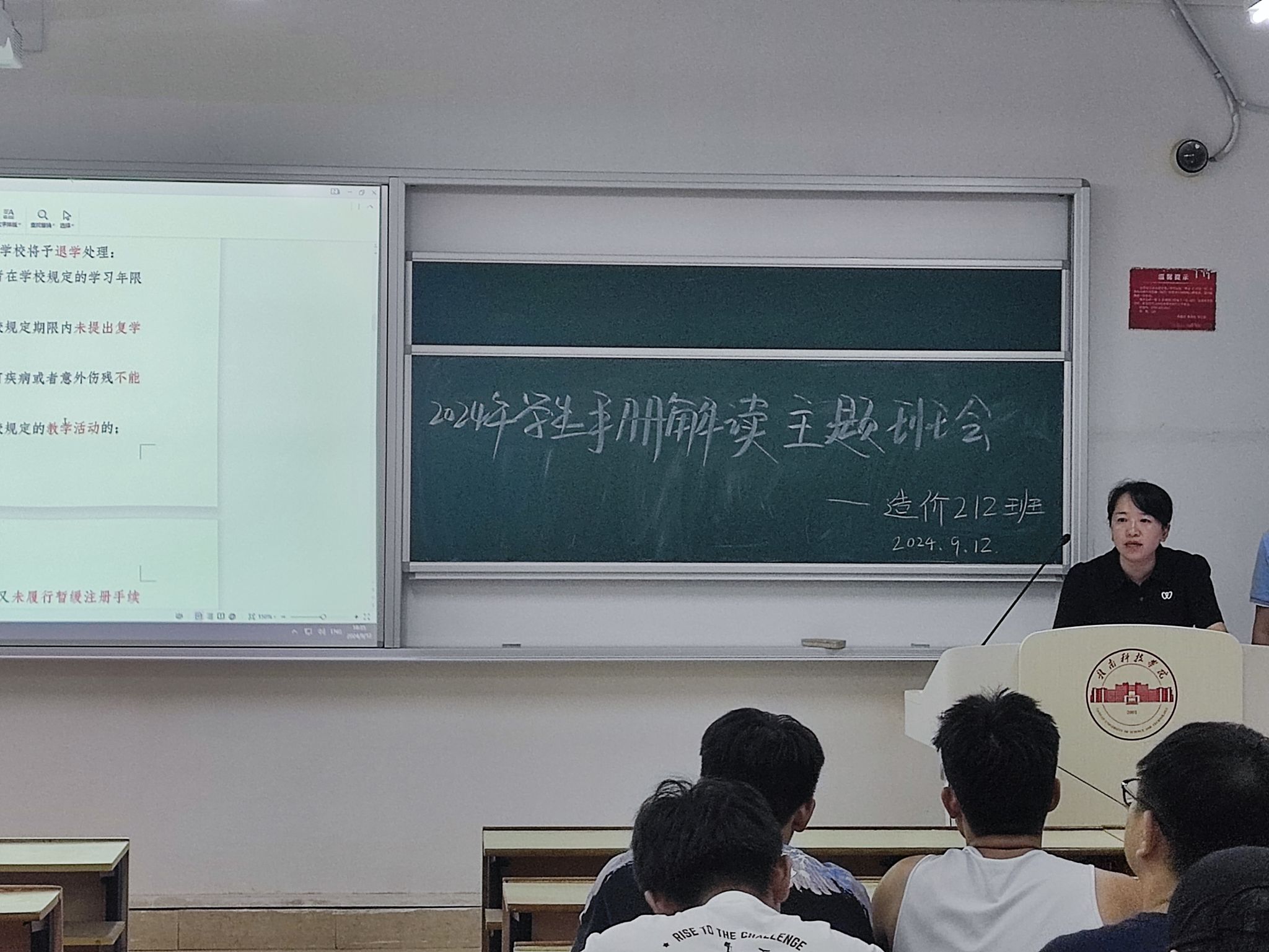 本网讯:9月12日至9月14日,金年会jinnianhuicom组织各班级开展“2024年学生手册解读”专题学习教育,此次活动以主题班会的形式,由各辅导员、班主任面向所带班级全体学生开展专题学习,通过深入剖析和讨论2024年新修订的《学生手册》(2024版)的内容,让同学们明确学校规章制度的重要性和意义,增强自我约束和自我管理能力。