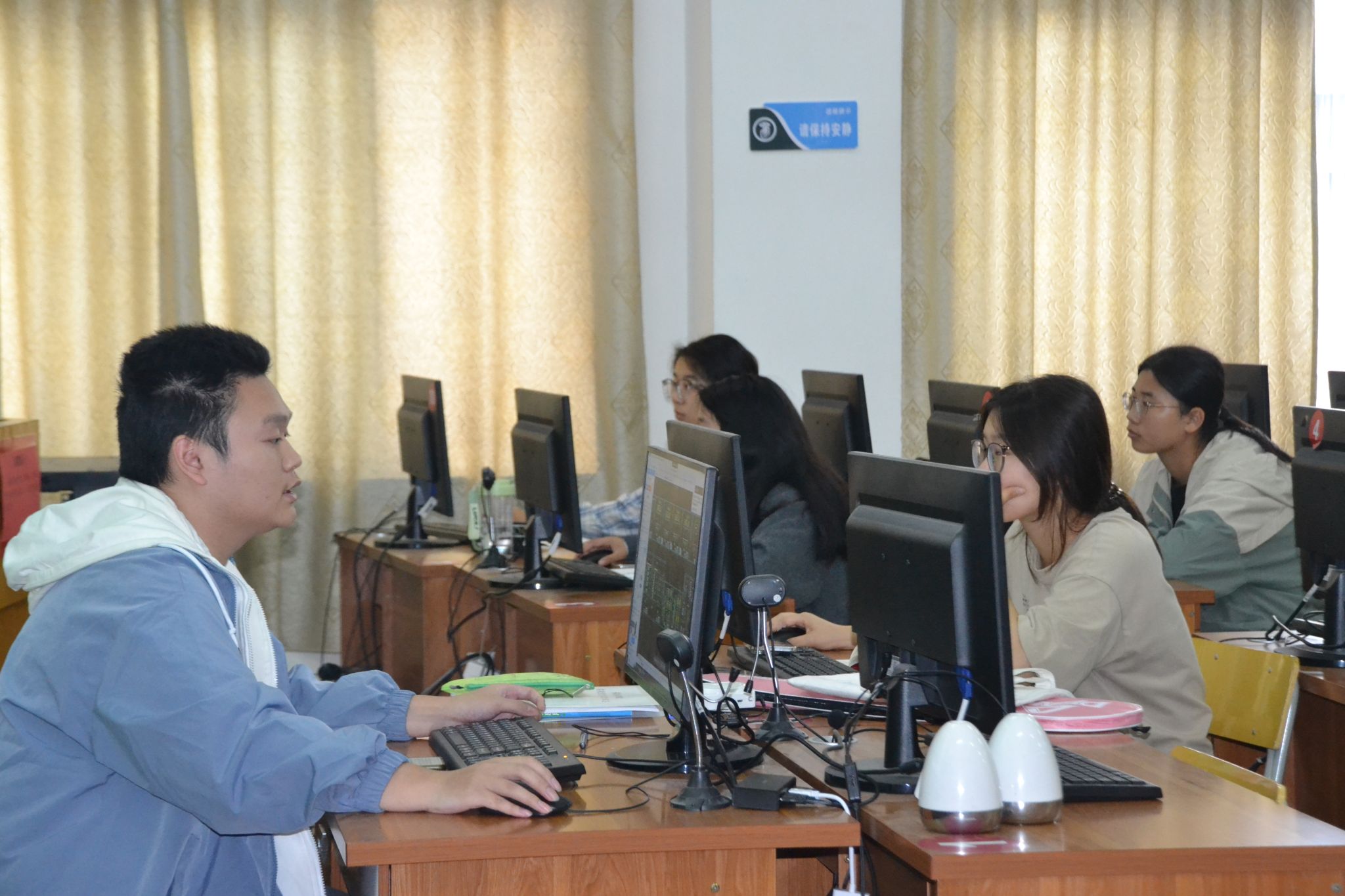 培训过程中,为让同学们更直观地理解图纸的各个组成部分,主讲人郭洋结合CAD图纸,介绍标高、轴网在图纸上代表的信息,并介绍如何识别墙、梁、板、柱等构件,讲解钢筋标注信息的含义。课上同学们积极参与互动,提出自己的疑问,主讲人也细心为其讲解。