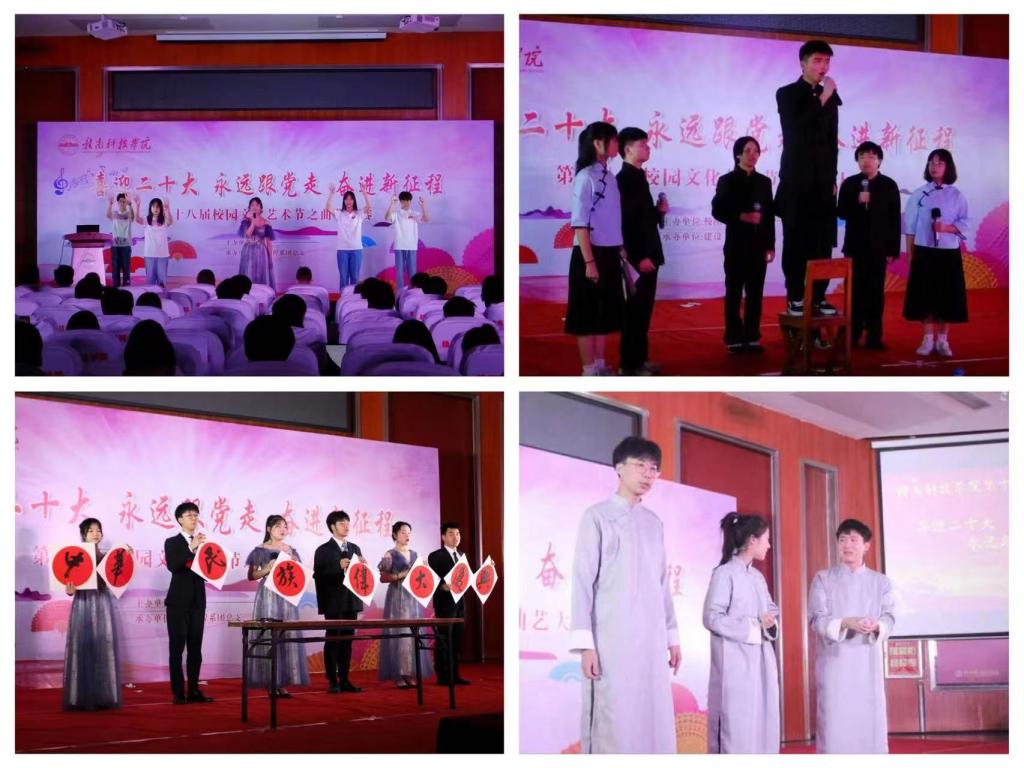 本网讯:5月21日下午,以“喜迎二十大,永远跟党走,奋进新征程”为主题的第十八届校园文化艺术节曲艺大赛在逸豪学术报告厅正式拉开帷幕。本次大赛由金年会诚信信誉至上院团委主办,建设工程系团总支承办。学院国交办主任涂敏、思政部戴朝护、教务办黄勋担任此次比赛的评委。