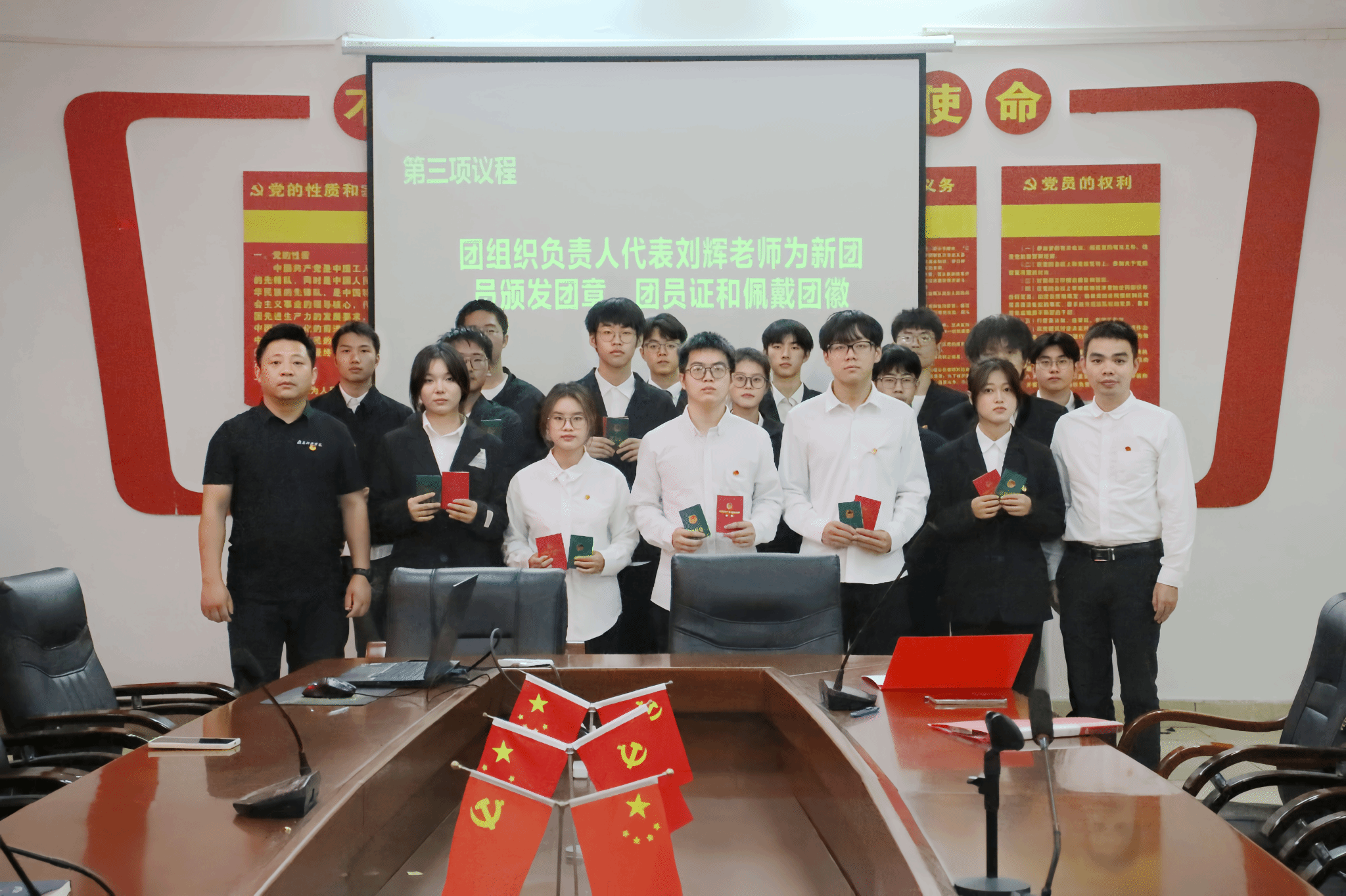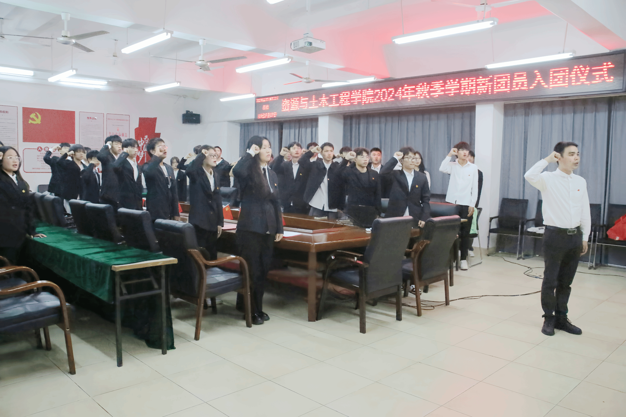 本网讯:为进一步增强广大团员青年的组织意识和爱国意识,团结引领广大青年坚定跟党走、建功新时代,做好党的助手和后备军,为团组织增添新鲜血液,11月13日下午,金年会jinnianhuicom于崇善楼Z713举行2024年新团员入团仪式。金年会jinnianhuicom党组织负责人代表涂黎明、团组织负责人代表刘辉及新发展团员、优秀团员代表等参加本次入团仪式。