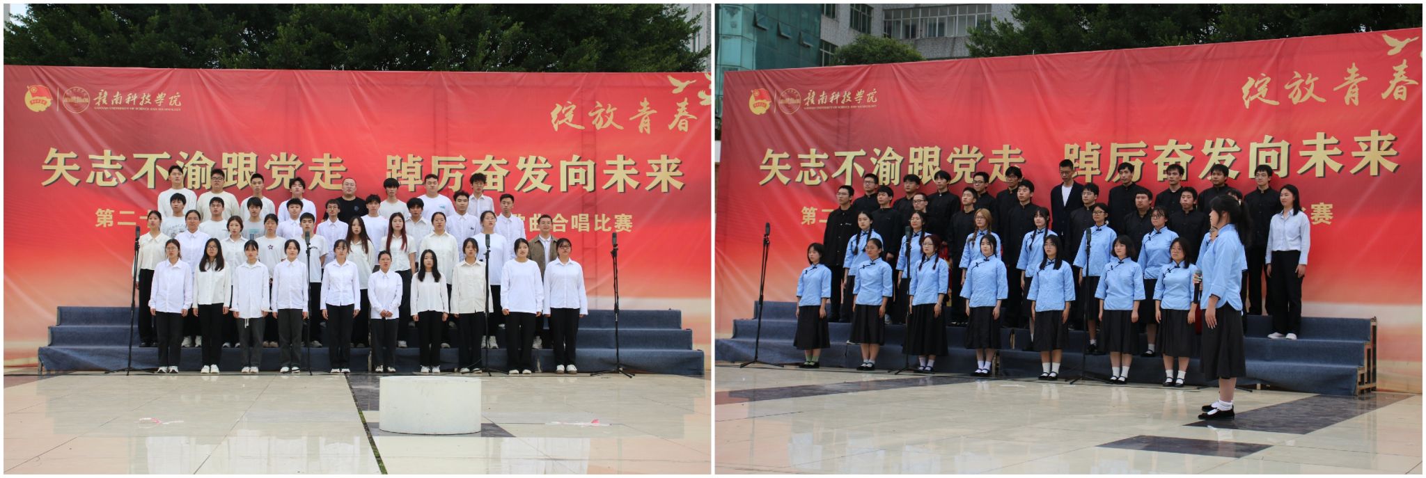 本次比赛分为新生组和老生组。比赛现场,各班级队伍精神抖擞、着装严整、斗志昂扬,以精彩绝伦的节目展现出精彩的表演,赢得在场老师与同学们的一致认可。在激烈的竞争过程中,新生组的土木 242 班《国家》、造价 241 班《紫荆花盛开》以及老生组的造价 223 班《走向复兴》、土木 222 班《地道战》凭借其卓越的表演脱颖而出,分别荣获新生组与老生组一等奖。除上述班级以外,其余班级也展现出别样的风采,在新生组和老生组中,分别有4个班级凭借出色的表现荣获二等奖,另有6个班级以良好的发挥获得三等奖。在个人奖项方面,新生组中,土木 242 班甘锦轩荣获最佳指挥奖、测绘 241 班包文彬获最佳领唱奖、土木 243 班吕安鑫获最佳朗诵奖;老生组中,矿加 231 班马源璞获最佳指挥奖、造价 223 班韩郑妮获最佳领唱奖、采矿 232 班吴文获最佳朗诵奖。本次比赛在造价233班杨瑞带来的歌曲《意外》、造价234班黄昕怡演唱的歌曲《最初的记忆》以及造价223班韩郑妮献唱的《我的美丽》中画上完美的句号。