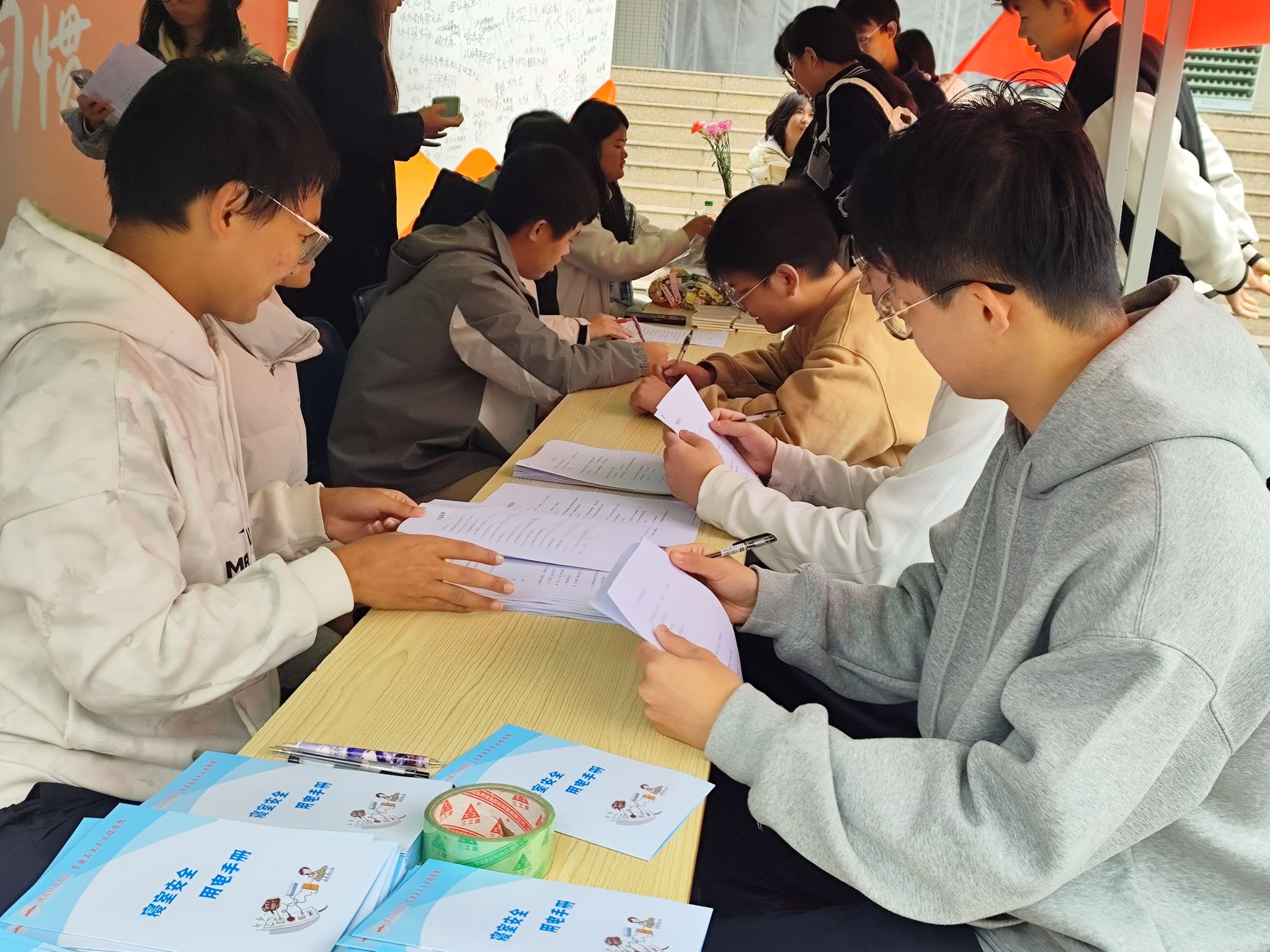 活动现场,工作人员向同学们分发寝室用电安全手册,宣传寝室用电安全知识。同学们随机抽取一组题目进行作答,答对相应题数的同学有机会得到公仔、钥匙扣、笔记本、黑字笔等奖品。前五十名来答题的同学附赠康乃馨一支。活动期间,同学们踊跃参与答题,气氛活跃,在金年会jinnianhuicom宿管部和校友部的共同努力下,本次活动取得圆满成功。