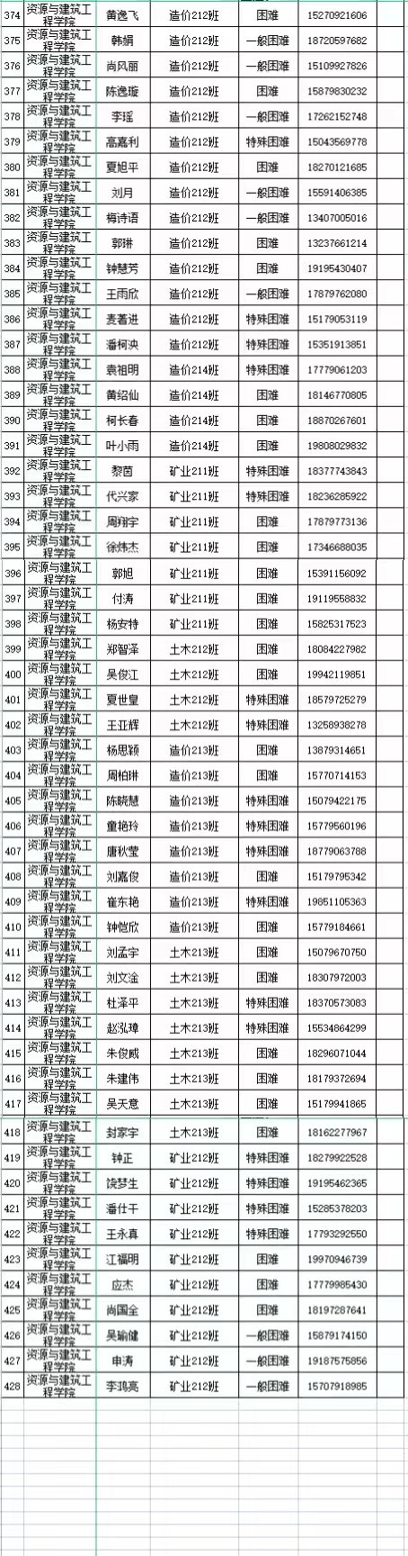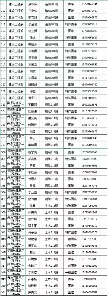 本网讯:建设工程系(资源与建筑工程学院)2021-2022学年18级—21级家庭经济困难学生名单公示: