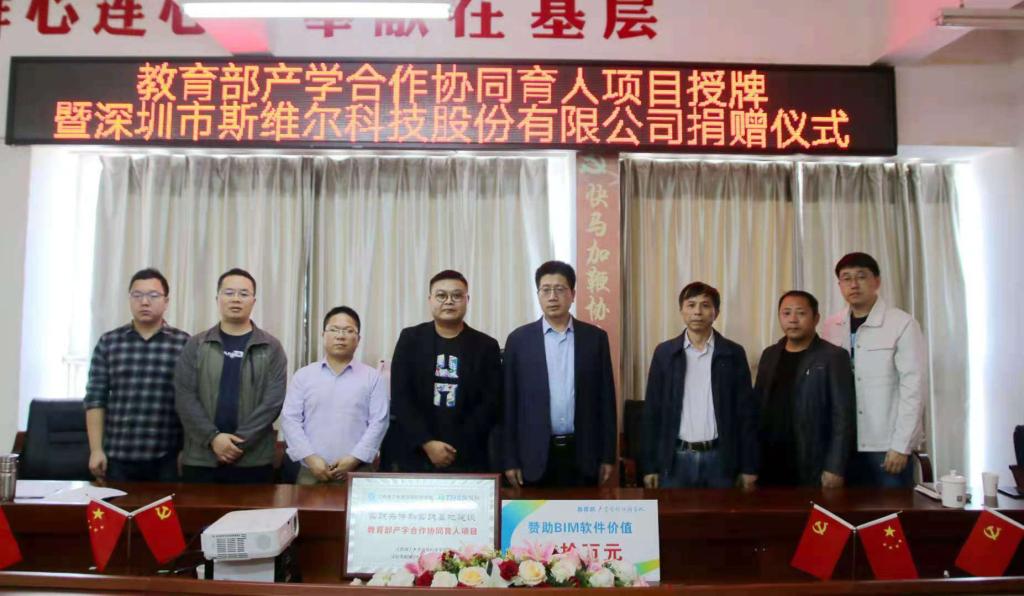 代靖怡介绍了教育部产学研协同育人项目的重要意义,向斯维尔科技有限公司对系部教学实践提供的支持和帮助表示感谢。捐赠仪式由三部分组成,首先付玉华和饶英凯对产学合作协同育人项目进行了授牌,随后深圳市斯维尔科技股份有限公司江西区域经理饶英凯代表企业向建设工程系捐赠了价值20万元的BIM软件,最后卢志刚和饶英凯进行校企合作签约,活动的开展不仅是校企合作的重要见证,更是企业对学院工作的肯定与支持。