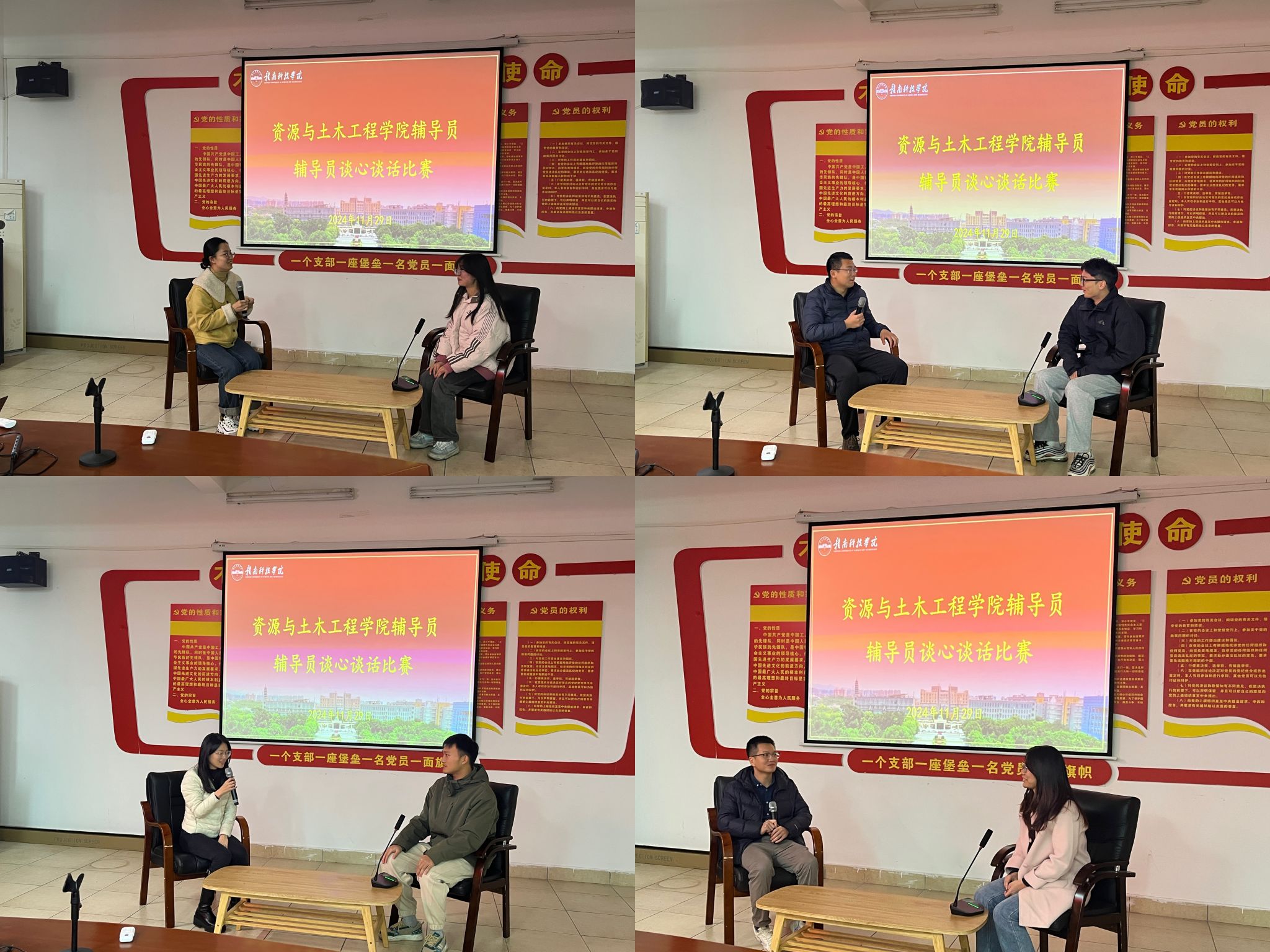 在谈话过程中,辅导员以关爱学生为出发点,耐心倾听学生的心声,详细了解他们在学习、生活、情感等方面遇到的困惑和问题。针对不同学生提出的问题和困惑,辅导员们给予个性化的指导和帮助。现场过程中辅导员通过情景模拟,与学生进行了深入的对话,展现出对学生情感的深刻理解和关怀。