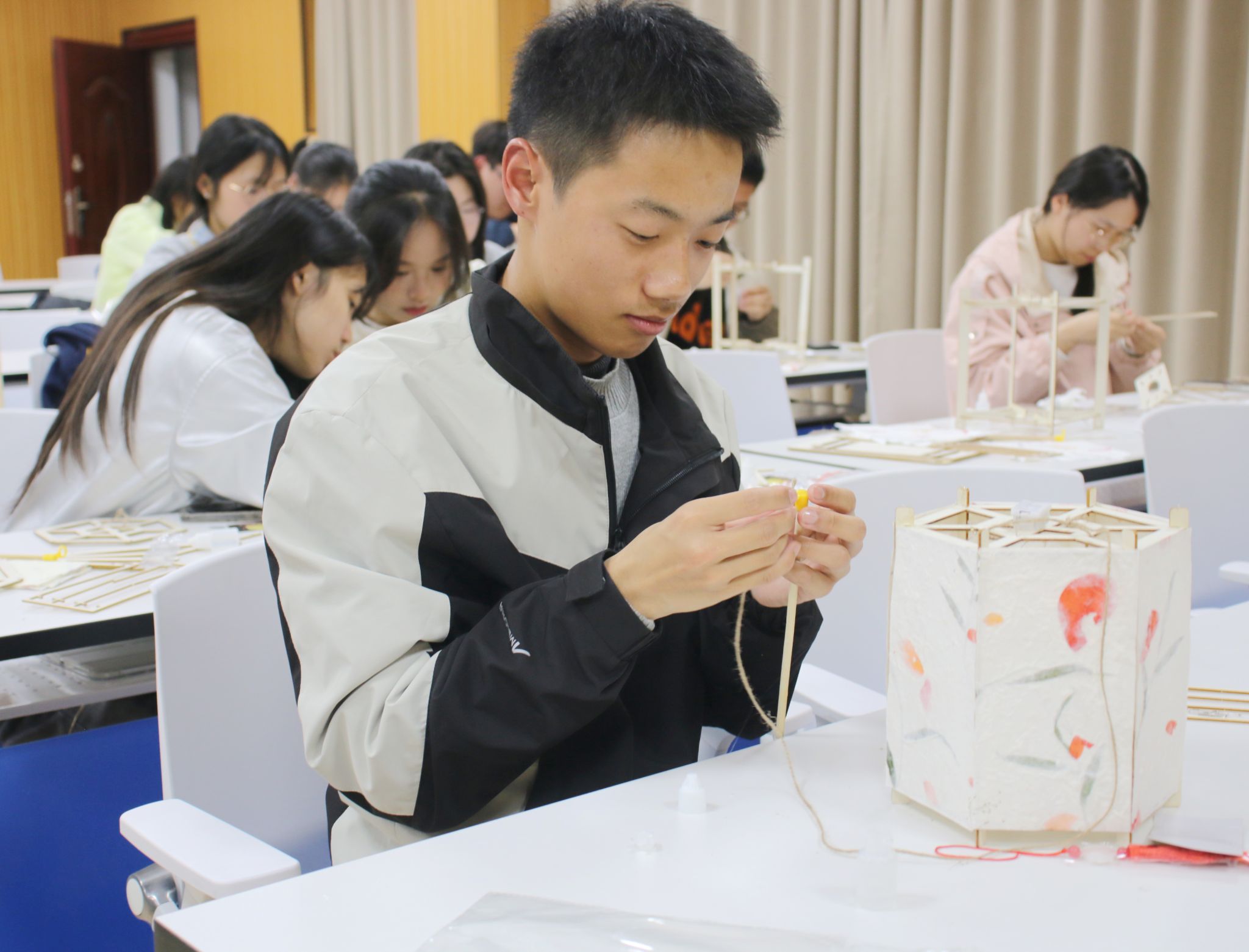 本网讯:为推动中华优秀传统文化的传承与发展,培养同学们的文化归属感和自豪感,弘扬勤俭、奋斗、创新、奉献的劳动精神,引导同学们树立正确的劳动价值观,3月21日晚,由学校党委学生工作部主办,金年会jinnianhuicom承办的“非遗花草灯”活动在智慧教室Z628顺利开展,通过沉浸式体验,让学生们用指尖感受中华优秀传统文化的魅力。