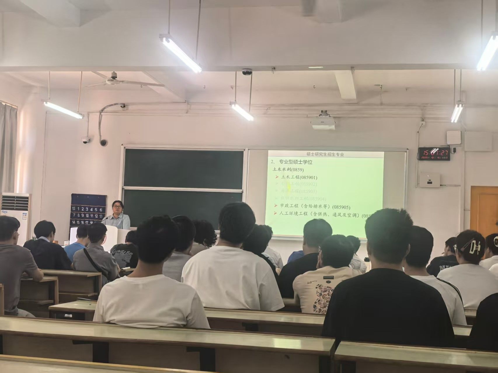 宣讲现场,高教授结合考研核心与院校实际,鼓励考生们明确备考方向,夯实知识基础,树立冲刺信心,进一步激发学子的报考热情与备考动力。同时,他详细介绍江西理工大学相关学院的发展特色、研究生培养方案、土木工程与测绘工程领域学科优势,以及前沿科研成果、在研项目、实验室条件,还分享了研究生就业数据、杰出毕业生案例及院校招生相关情况,内容详实且通俗易懂,为学子在院校专业选择上提供清晰参考。他动员并鼓励同学们结合自身规划,积极报考江西理工大学相关专业研究生。问答环节,考生们围绕“科研经历对进建筑央企的帮助”“备考侧重实践还是科研”等问题提问,高教授耐心解答,语言亲切,现场氛围热烈。