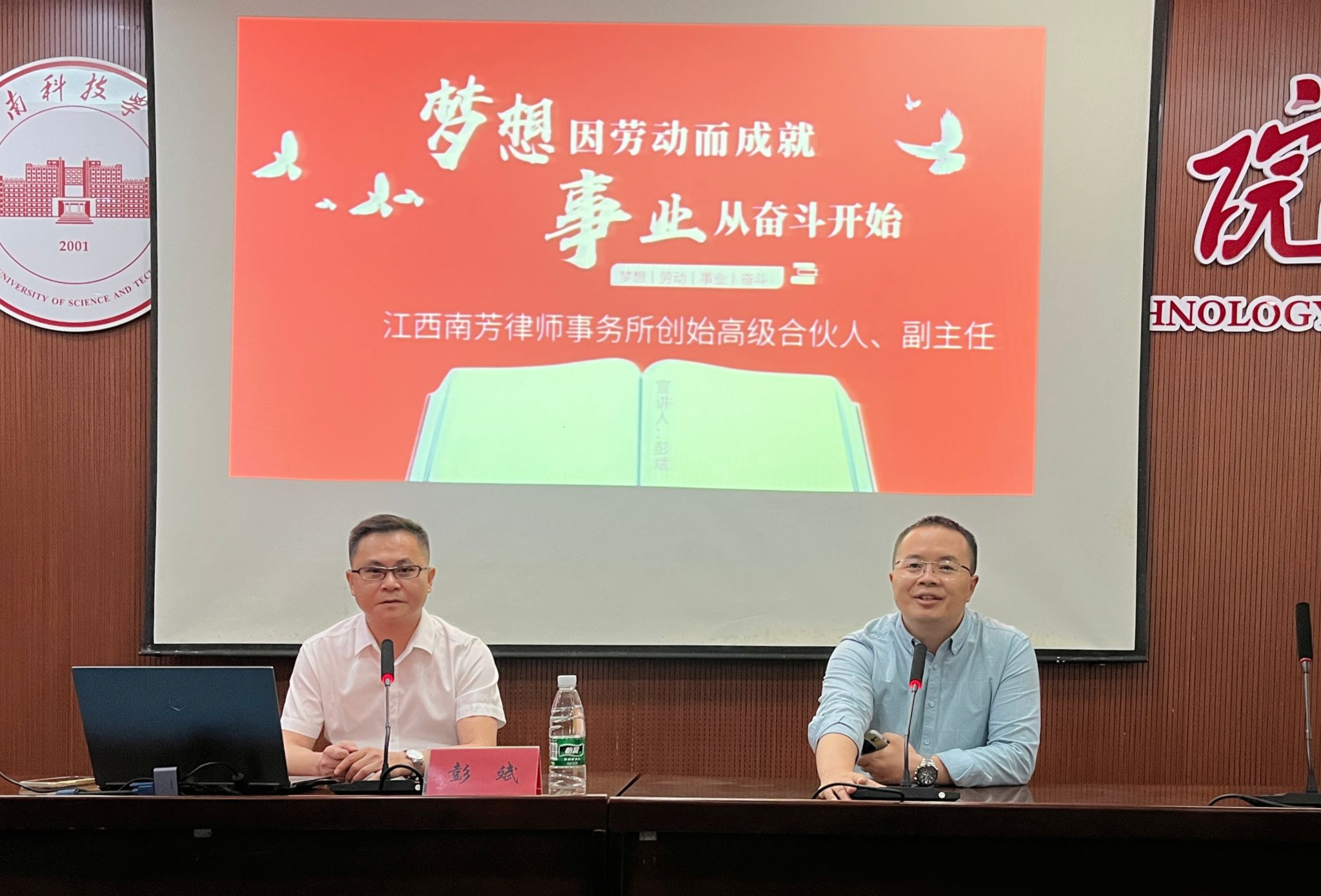 本网讯:为增强学生的劳动意识,培养劳动实践技能,5月23日下午,由校团委主办,建设工程系承办的以“梦想因劳动而成就,事业从奋斗开始”为主题的第94期金沙湾讲坛于2号教学楼MBA学术报告厅开展。江西南芳律师事务所创始高级合伙人、副主任彭斌受邀来到金年会官网讲座授课,建设工程系两百多名学生参加此次讲座。