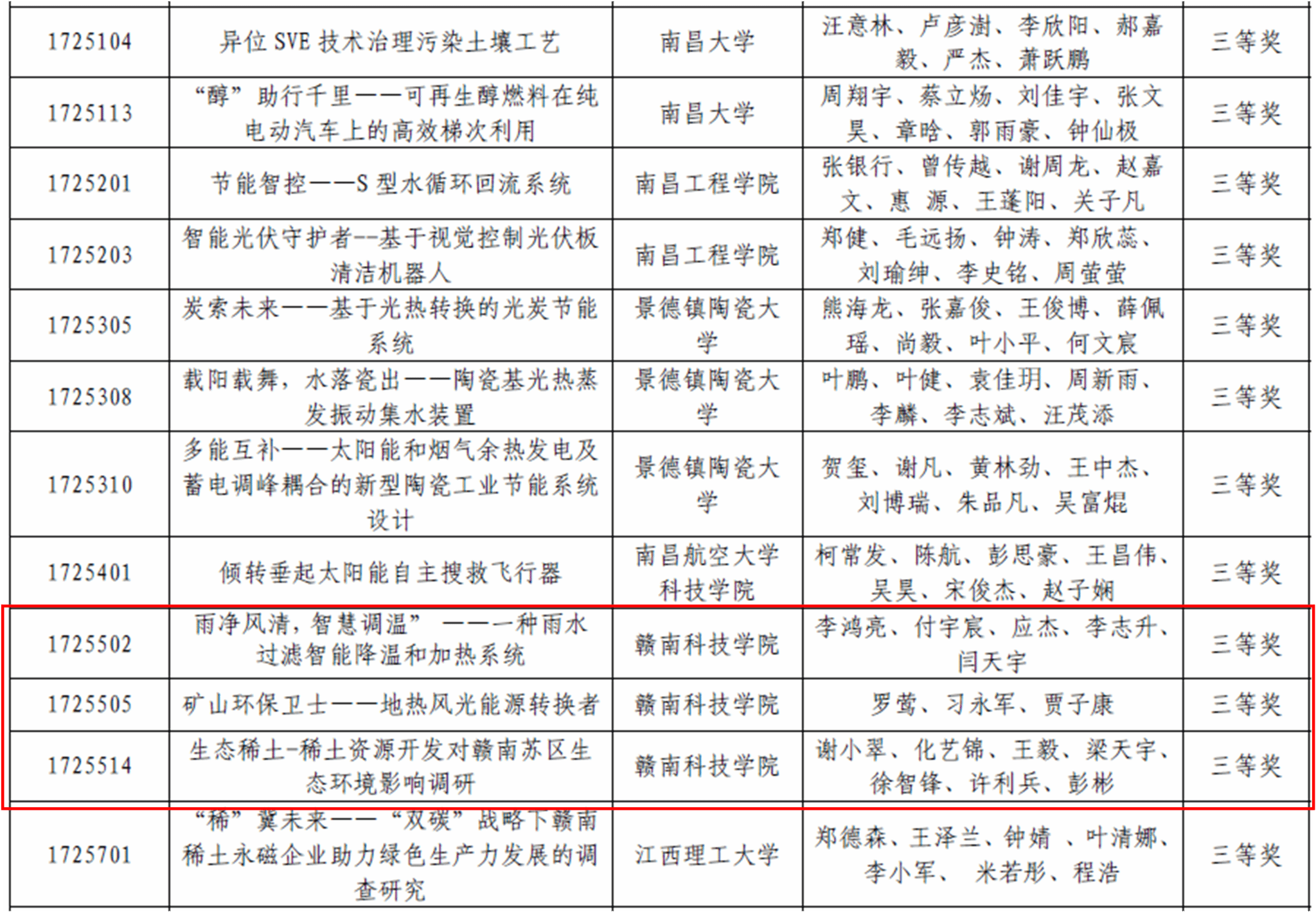 由金年会jinnianhuicom雷大星、刘波老师指导的李鸿亮、付宇宸、应杰、李志升、闫天宇同学完成科技作品“雨净风清,智慧调温一种雨水过滤智能降温和加热系统”,以及雷大星、胡健老师指导的罗莺、习永军、贾子康同学完成的科技作品“矿山环保卫士一一地热风光能源转换者”,邱森和孔靖宇老师指导的谢小翠、化艺锦、王毅、梁天宇、徐智锋、许利兵、彭彬同学完成的实践调查类作品“生态稀土—稀土资源开发对赣南苏区生态环境影响调研”,从众多作品中脱颖而出,均斩获全国三等奖。这三件作品立足生产实际,体现了金年会官网学子勇于创新、敢于实践的精神风貌。