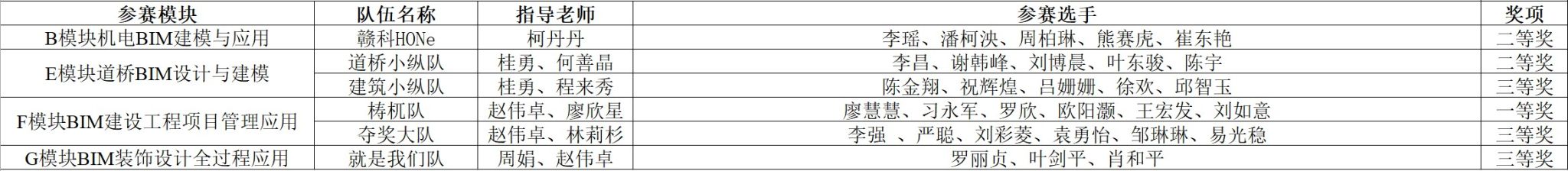 金年会官网金年会jinnianhuicom6支参赛团队在赵伟卓、柯丹丹、桂勇、林莉杉等老师的带领下荣获江西省第四届高校BIM毕业设计创新大赛一等奖1项、二等奖2项、三等奖3项。