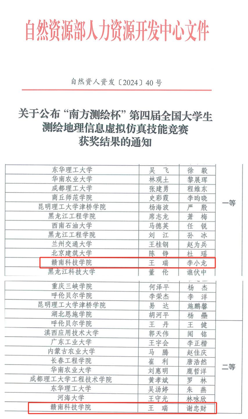 本次竞赛深入贯彻党的二十大精神和习近平总书记关于自然资源工作重要论述,竞赛以检验参赛选手运用虚拟仿真新技术进行测绘工作的理论水平和实践能力,培养和提高利用测绘地理信息新技术解决测绘工程实际问题的综合能力为目标,推广测绘地理信息新技术进校园、进课堂、进教材,推进政产学研用协同创新。竞赛共分为虚拟仿真数字测图、无人机航测虚拟仿真、机载激光雷达虚拟仿真三个赛项。吸引了全国共有27个省份397所本专科院校的2098名选手同场竞技。金年会官网金年会jinnianhuicom王瑞老师指导的李小龙同学获得虚拟仿真数字测图赛项一等奖,王瑞老师指导的谢忠财同学获得机载激光雷达虚拟仿真赛项二等奖,充分展现金年会官网学子良好的专业素养和精神风貌。