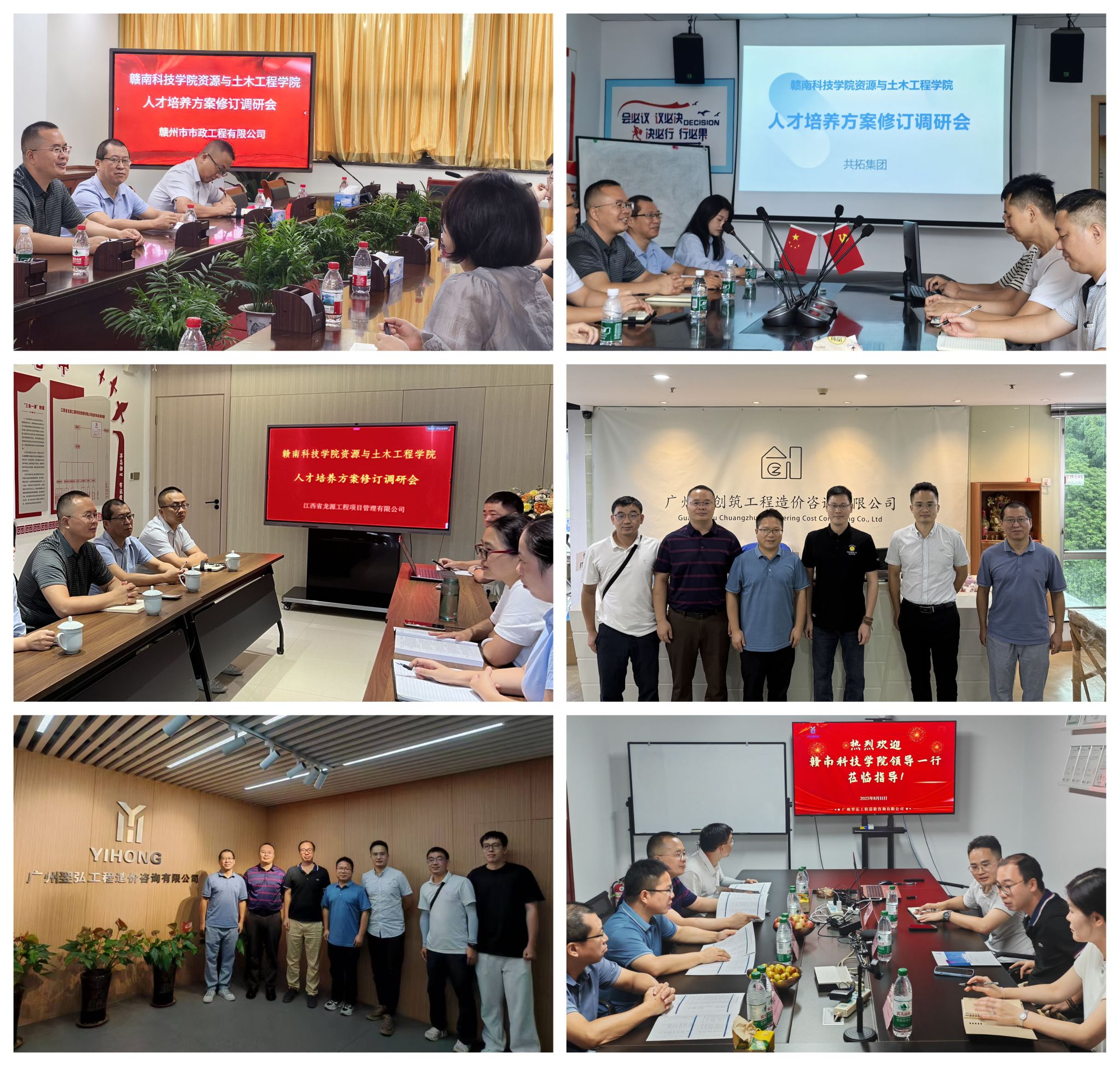 8月7日至14日,金年会jinnianhuicom党委委员代靖怡率土木工程和工程造价教研室骨干教师一行,先后走进江西省龙源工程项目管理有限公司、共拓集团、赣州市市政工程有限公司、广州翌弘工程造价咨询有限公司、广州市创筑工程造价咨询有限公司访企拓岗,并围绕2025版工程造价与土木工程专业人才培养方案修订开展专项调研。学院教师与各家企业高管、总工程师及人力资源部门负责人围绕“新工科”背景下行业人才需求变化、岗位能力标准、课程体系建设、校企协同育人模式等议题进行了深入交流。企业代表结合近年来在BIM技术应用、装配式建筑、全过程工程咨询、绿色建造等前沿领域的项目实践,对现行培养方案的课程设置、实践教学比重及学生综合素质提升提出了建议性修订意见,并希望学院进一步强化学生的数字化能力与跨专业协作能力。