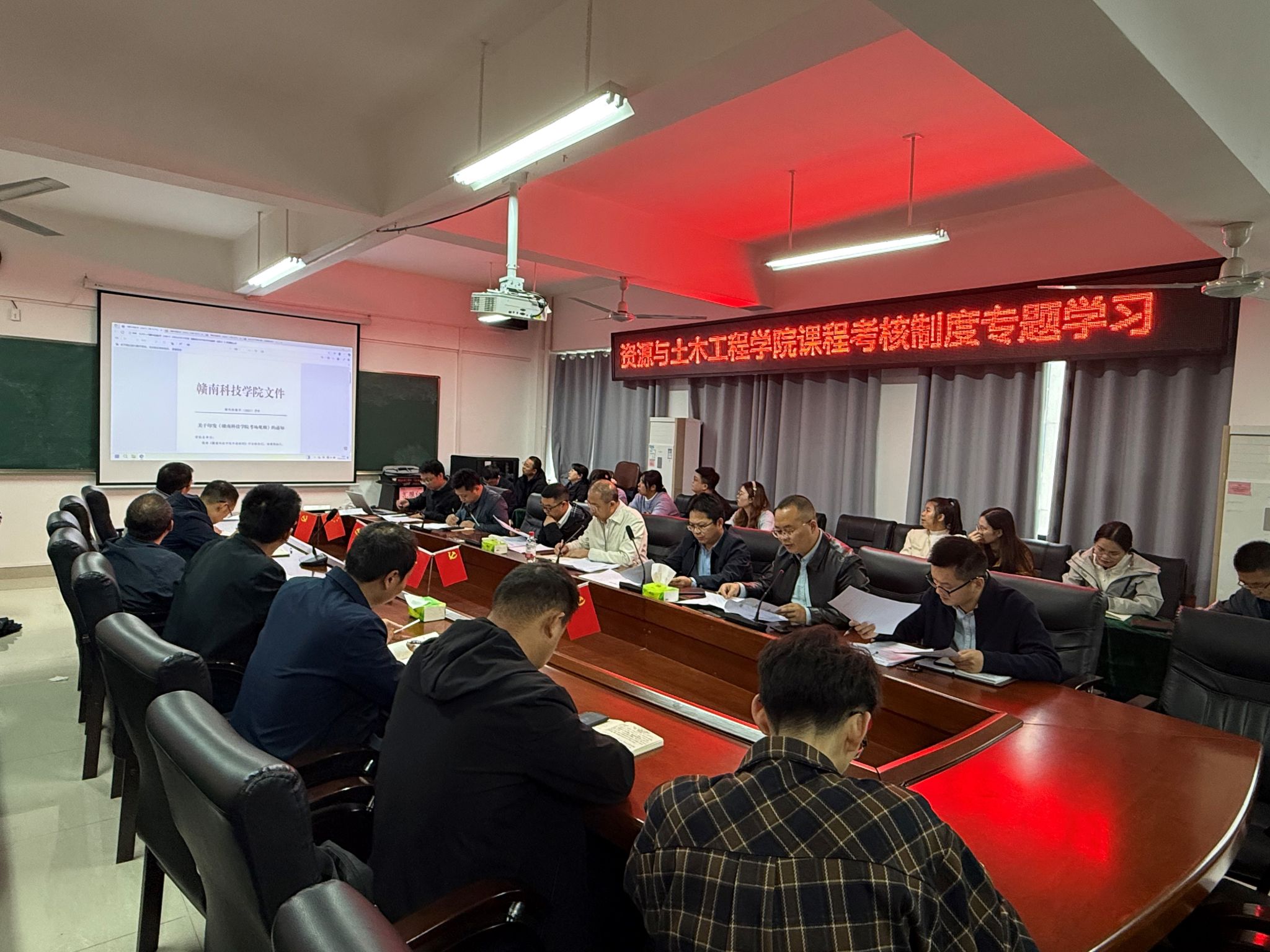 会议伊始,学院教学科研办公室副主任赖泽金领学《金年会诚信信誉至上课程考核与成绩管理办法》,围绕考核方式改革、成绩评定标准、补考重修管理、试卷归档规范等关键条款展开详细说明,强调要严格落实“过程性考核与终结性考核相结合”的要求,全面客观评价学生学习成效,同时明确教师在成绩录入、档案整理等环节的责任清单。
