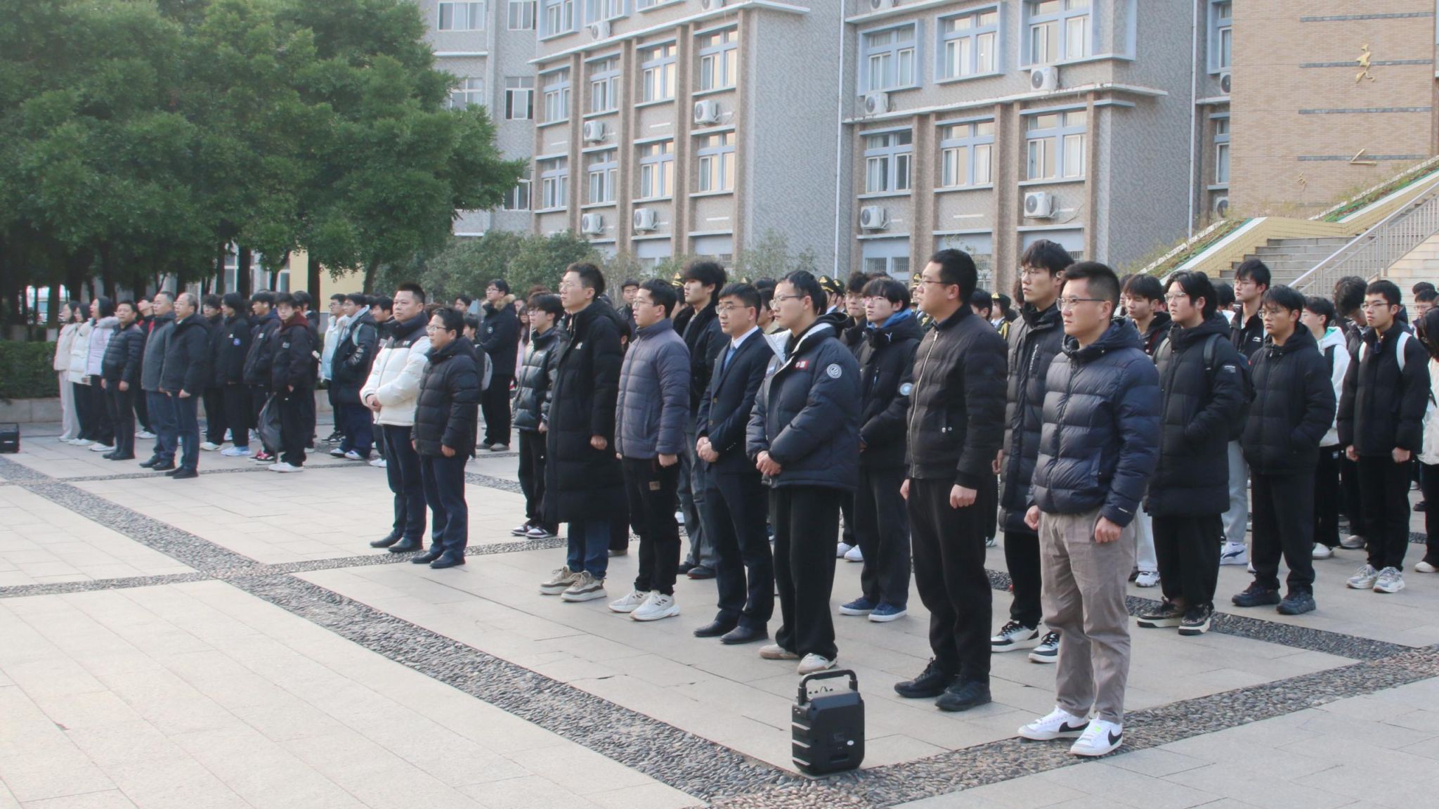 本网讯:2月24日清晨,金年会jinnianhuicom以“我为评估做贡献”为主题,在崇善楼北门前举行升旗仪式,号召全体师生以积极向上的精神面貌迎接本次教育部本科教学工作合格评估。金年会jinnianhuicom党委书记刘俊峰,学校组织人事部副部长邓海生,学院副院长卢志刚、学院党委委员代靖怡、涂黎明及师生代表共计150余人参加本次升旗仪式。