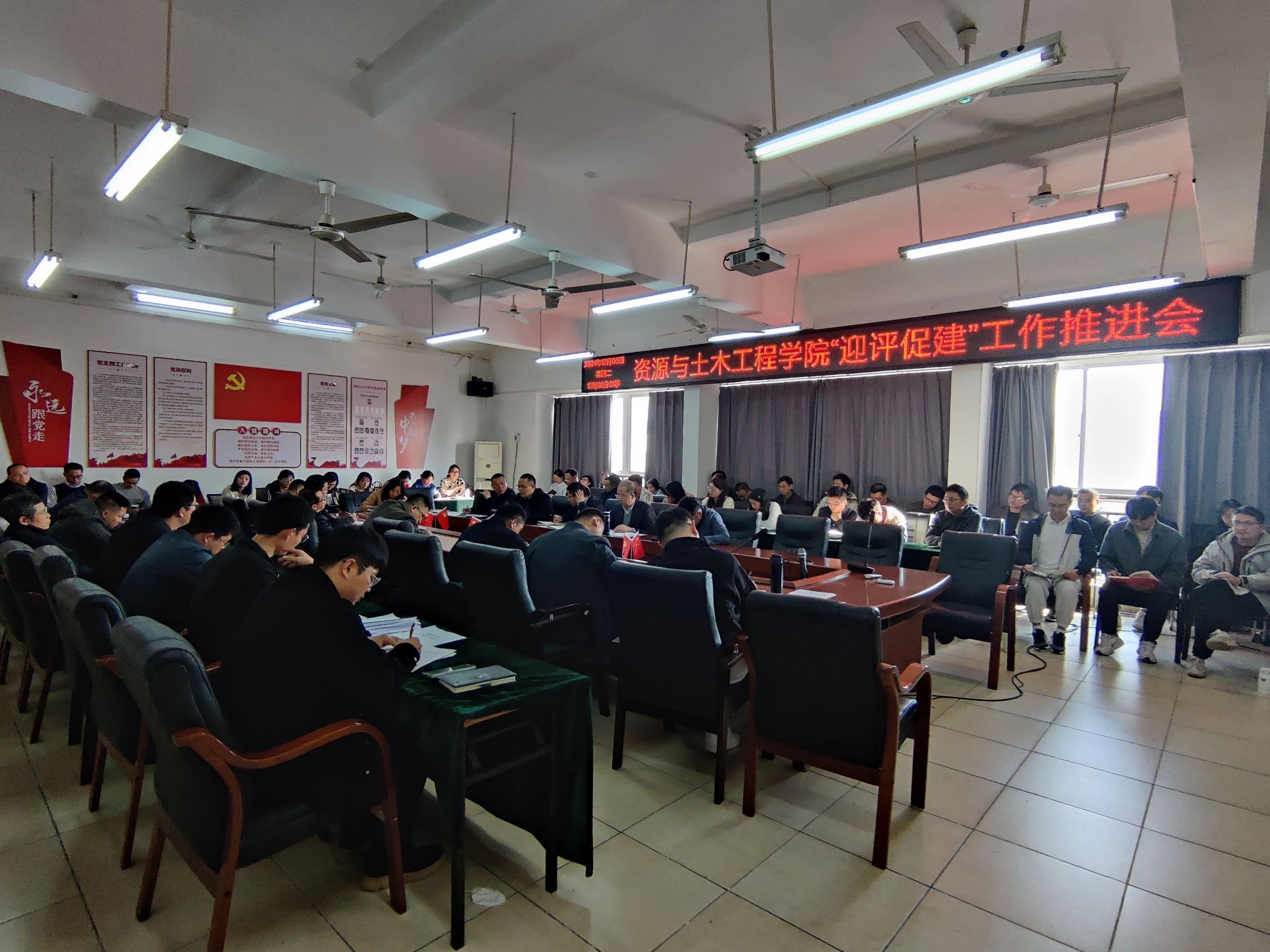 资源与土木工程副院长卢志刚在会上做工作强调。他首先对全体教师的辛勤付出表示感谢,并指出,迎评促建工作是学校当前的首要任务,对于提升学校整体办学水平和影响力具有重要意义。要求全体教师深刻认识到评估工作的重要性和紧迫性,以高度的责任感和使命感投入到迎评工作中。同时,他要求各部门要密切配合,形成合力,进一步细化工作方案,明确责任分工,确保各项工作落到实处。