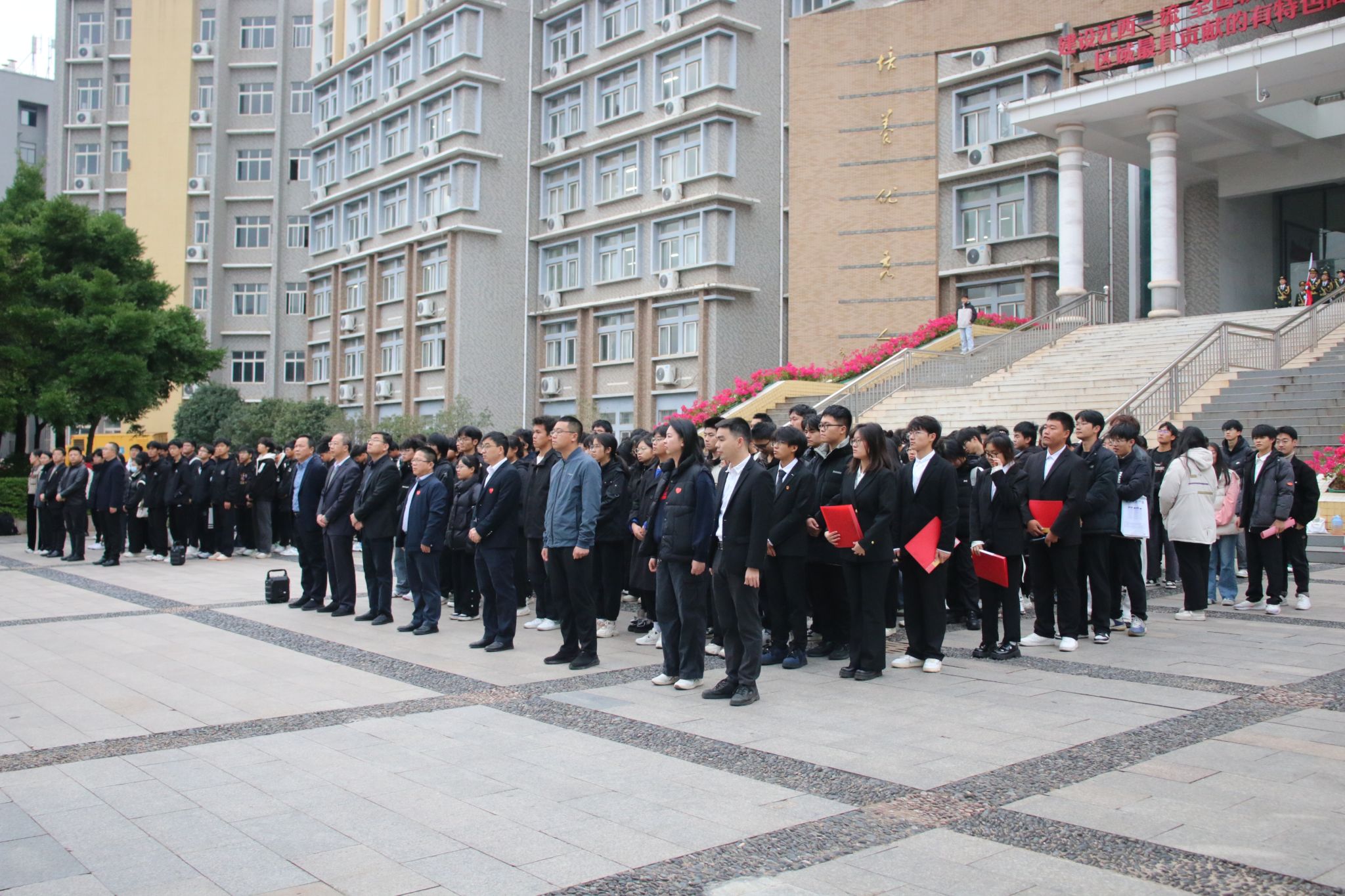 学生代表工程造价241班郑玉洁开展作“喜迎学校党代会,做拼搏贡献的赣科青年”为主题的国旗下演讲。她倡议金年会jinnianhuicom学子应携手共进为学校合格评估添砖加瓦,围绕学校中心工作,服务大局,在学习生活、学科竞赛、志愿服务等方面贡献青春力量,献礼学校即将召开的第一次党代会,以更加饱满的热情、坚定的信心、扎实的行动争做拼搏奉献的新时代赣科青年。学生代表工程造价242班孙贺淇、工程造价242班谌业兴、工程造价242班刘思彤和土木工程241班徐奇翔共同领唱《赣科学子迎评歌》,全体师生齐声跟唱,此次升旗仪式在歌唱中圆满结束。