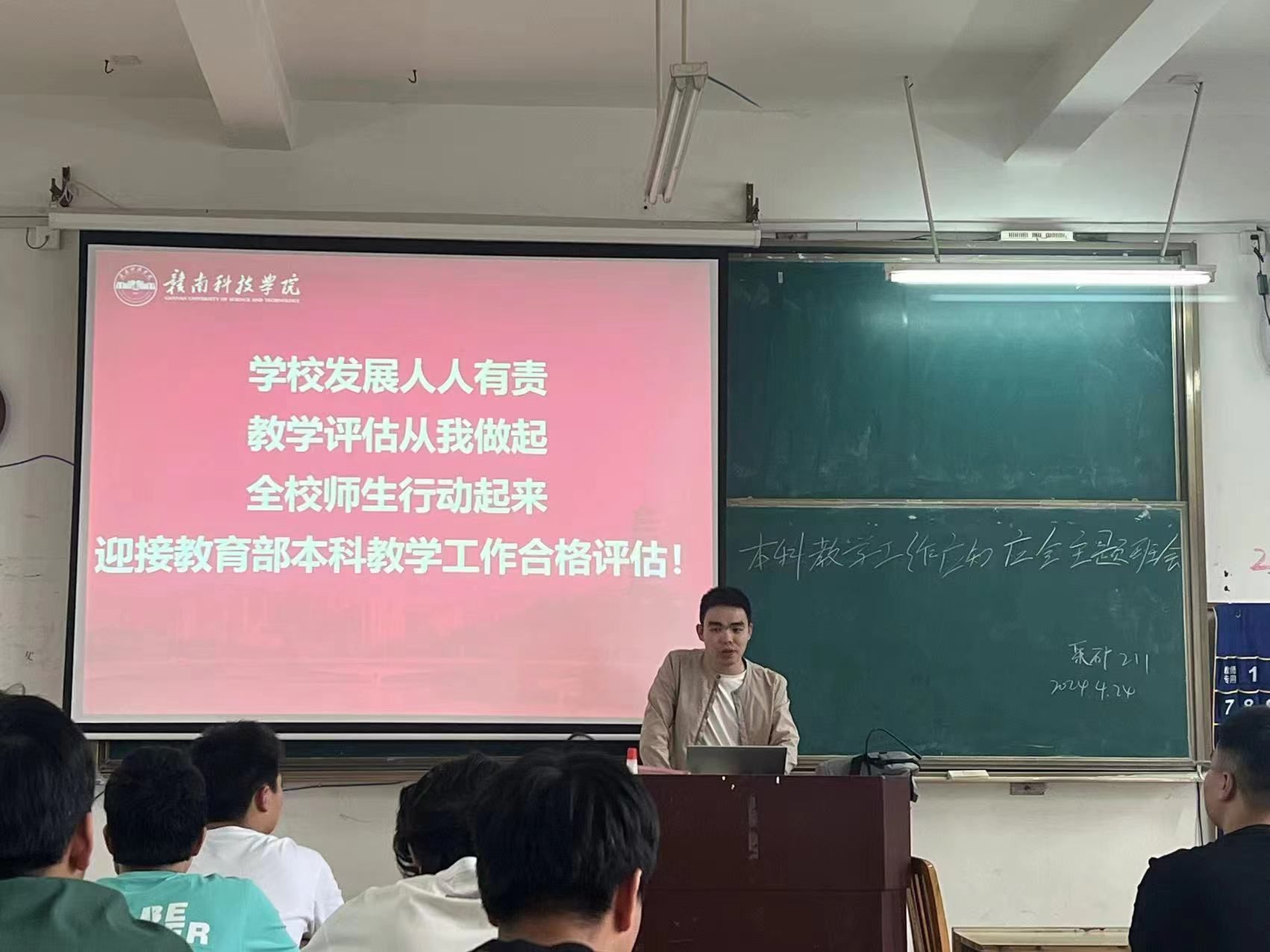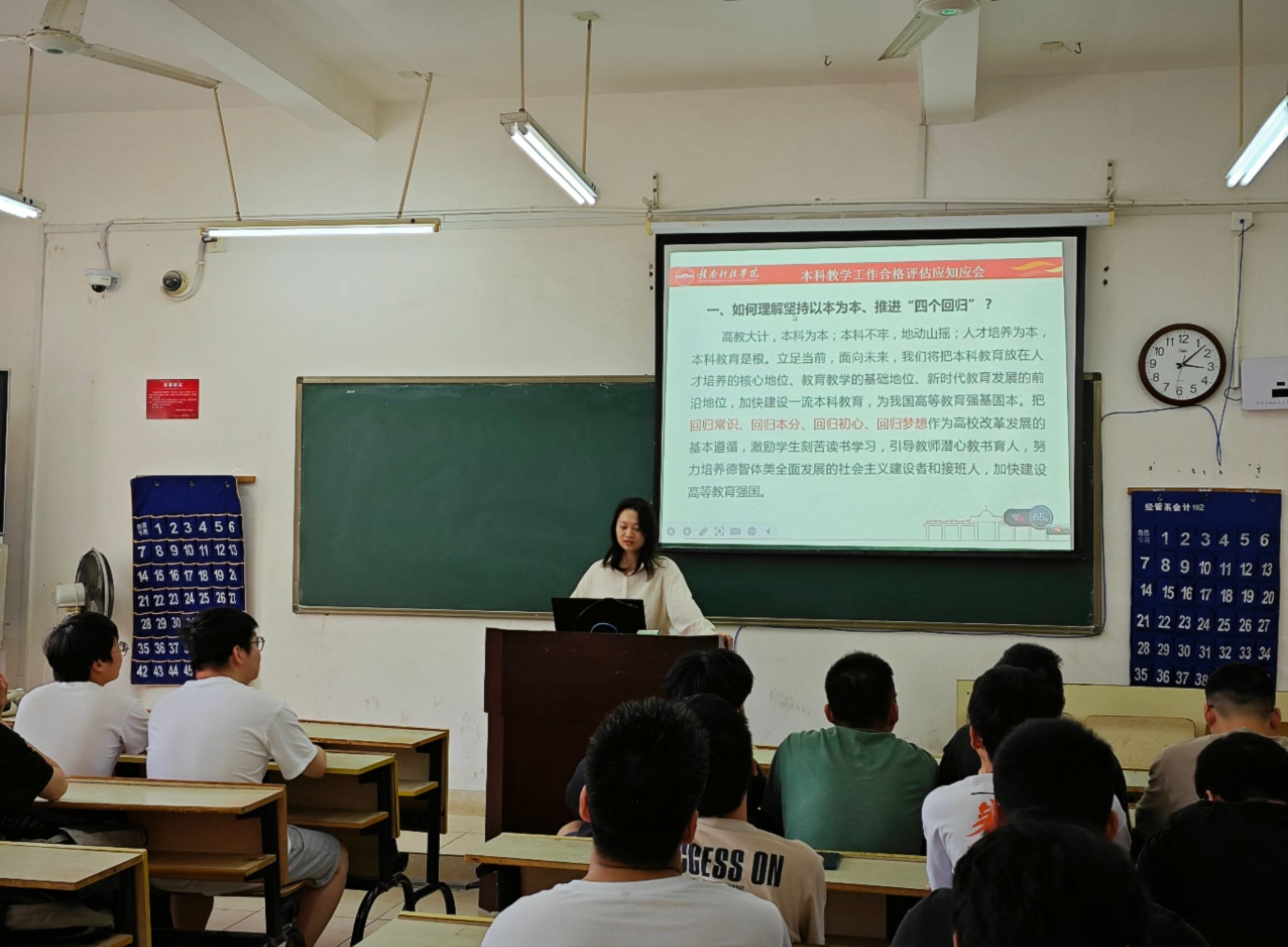 本网讯:为进一步做好本科教学工作合格评估工作,推进金年会官网高质量发展,4月24日至今,金年会jinnianhuicom组织开展本科教学工作合格评估应知应会主题学习,通过开展教职工大会领学、各班级召开主题班会专题学习,推动全覆盖学习本科教学工作合格评估应知应会。