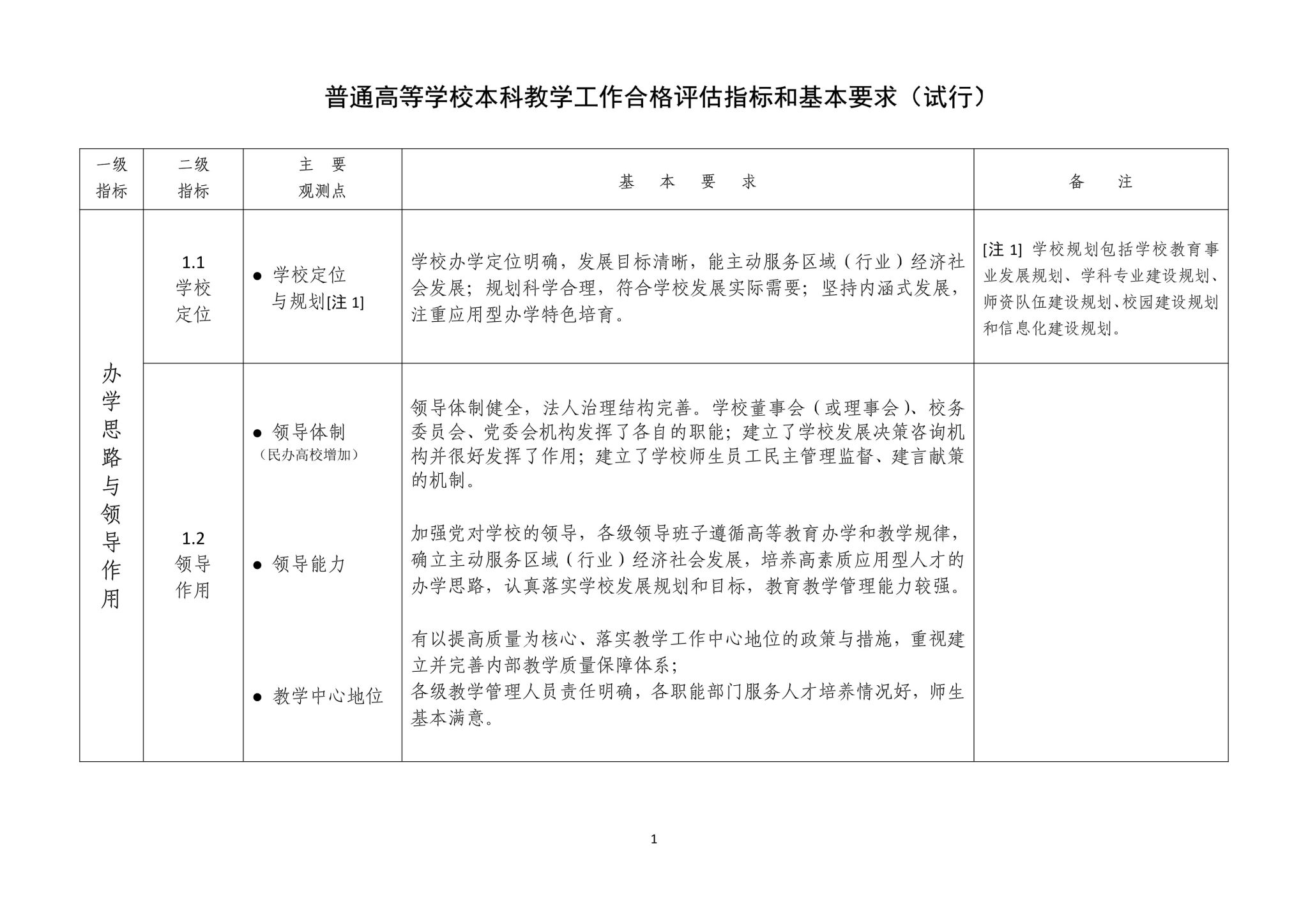 【迎评促建】本科教学工作合格评估指标体系