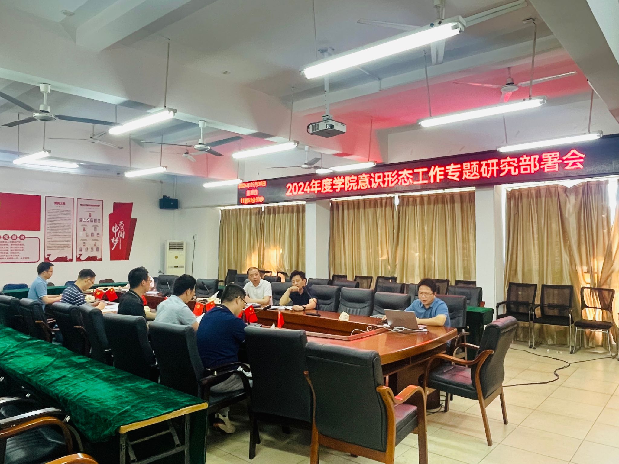 会议强调,要以党的二十大精神和习近平新时代中国特色社会主义思想为指导,深入贯彻落实党的教育方针,以提高全院师生思想政治素质、推动学院全面发展为目标,进一步把握正确舆论导向,持续加强学院意识形态工作,营造浓厚的思想政治氛围,以社会主义核心价值观为引领,把思想价值引领贯穿教育教学全过程和各环节,为学生成长成才提供思想保障;要牢牢掌握意识形态工作的领导权、管理权、话语权,解放思想、认清形势,认真分析新形势下意识形态工作面临的新问题、新挑战,以新思路、新举措不断破解遇到的难题;要深入开展社会主义核心价值观主题教育,组织学生开展理想信念教育、爱国主义教育、民族团结教育、安全教育、法制教育、诚信教育,加强对大学生安全防范教育和遵纪守法教育,树立大学生的安全防范意识和自觉遵纪守法的意识。
