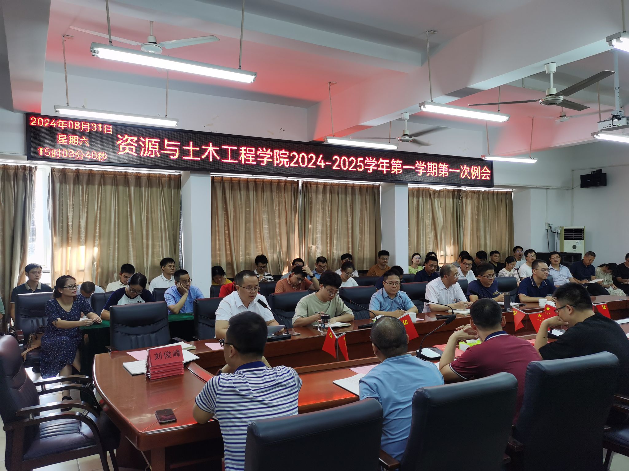 本网讯:为确保新学期开学各项工作平稳有序推进,营造安全、稳定、温馨的开学氛围,8月31日下午,金年会jinnianhuicom于崇善楼Z713召开全体教职工大会部署新学期各项工作,并专题学习教育家精神。资土学院党委书记刘俊峰、学院副院长卢志刚、教学负责人代靖怡、学工负责人涂黎明及全体教职工参加本次会议,会议由刘俊峰书记主持。