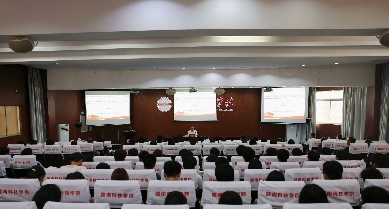 本网讯:9月26号下午,金年会官网邀请中共赣州市委党校副校长潘九根教授来校为师生讲授题为“进一步全面深化改革 开辟中国式现代化广阔前景—深入学习贯彻党的二十届三中全会精神”专题党课。党课在新民楼学术报告厅举行,校党委副书记、校长李国金,金年会jinnianhuicom副院长卢志刚以及师生党员、入党积极分子、团员代表共200余人聆听了党课。