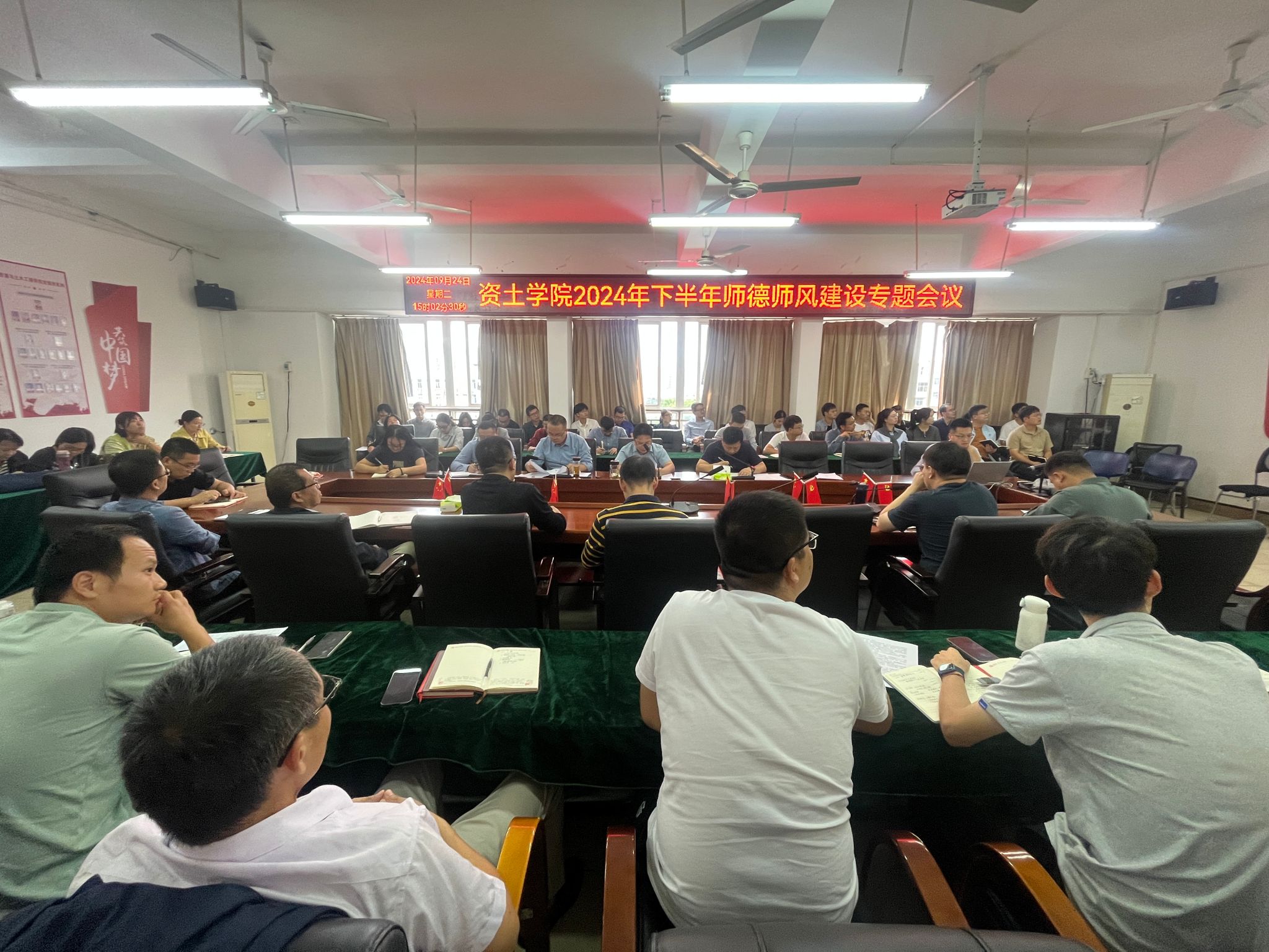 会上,卢志刚领学了习近平总书记在全国教育大会上的重要讲话、代靖怡领学了《中华人民共和国教师法》第二章教师权利与义务的内容以及学校组织人事部下发的《关于2024年下半年师德师风建设工作提示》文件精神、涂黎明传达了学校下发的《关于规范教职工着装与仪容仪表的通知》文件精神,原伟泉、郭孝翀两位博士结合师德师风主题和工作实际作交流发言。