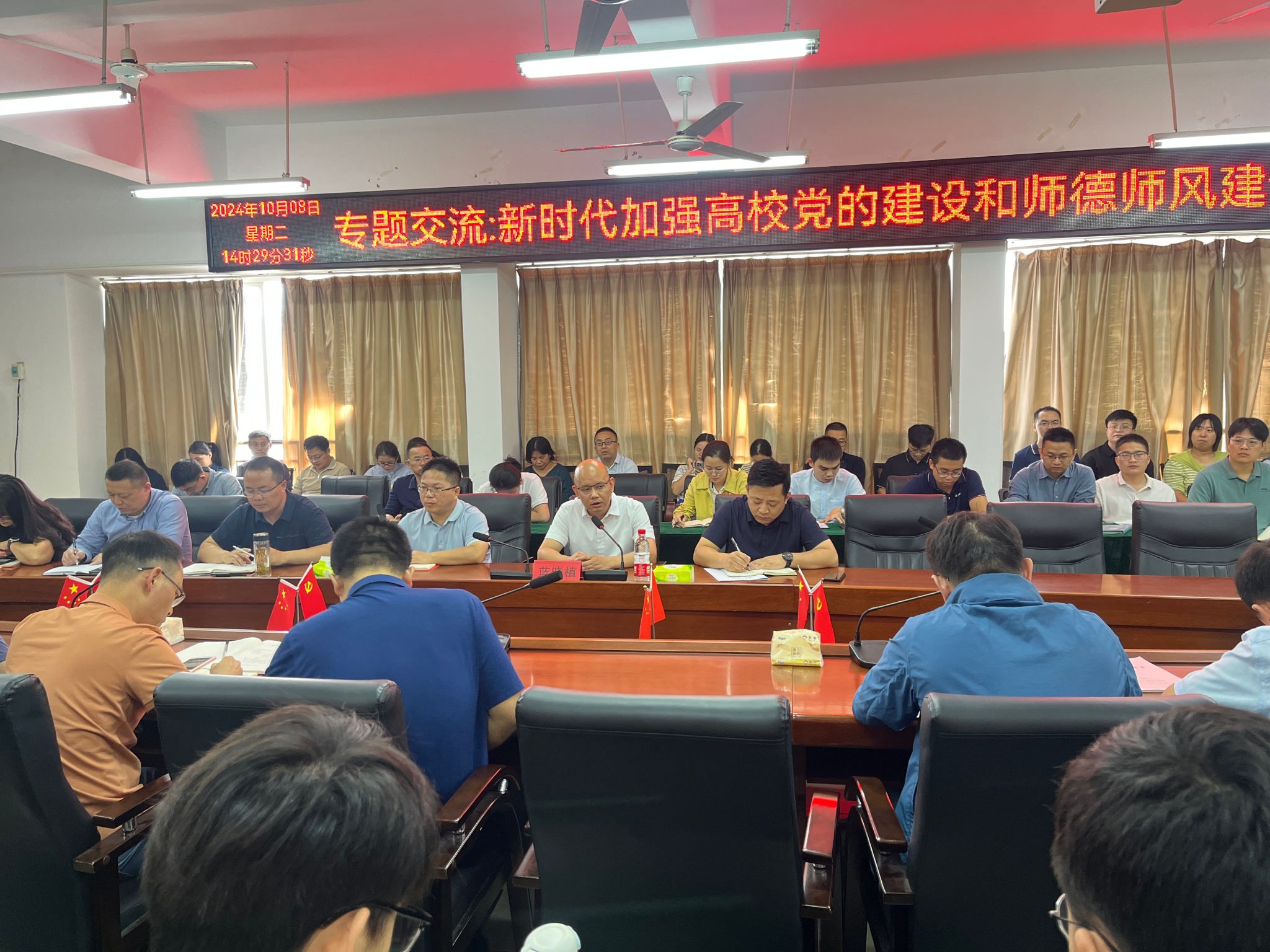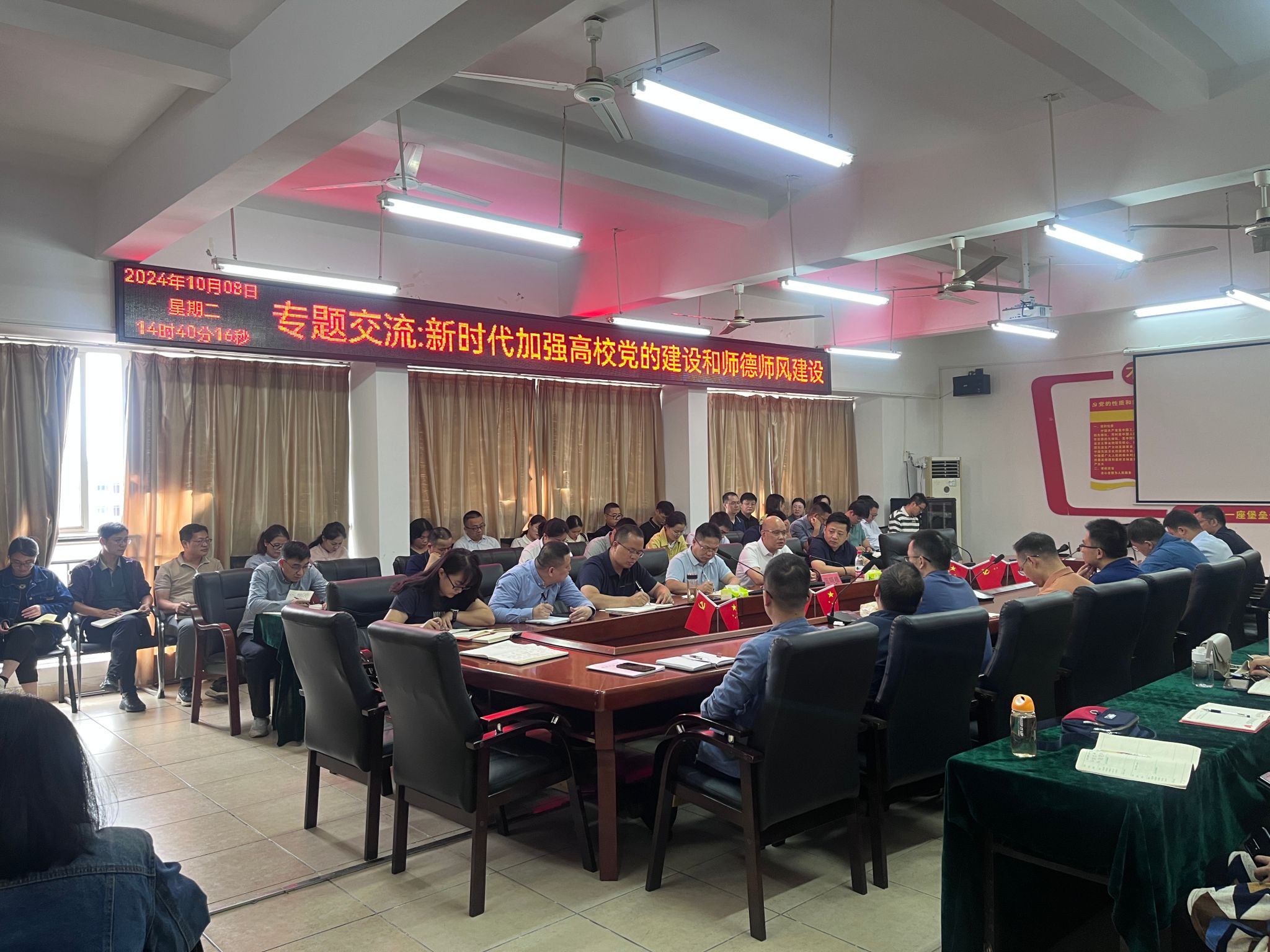 本网讯:10月8号下午,金年会jinnianhuicom邀请学校党委委员、组织人事部部长蓝晓植为全体教职工开展题为“新时代加强高校党的建设和师德师风建设”的专题交流讲座。本次专题交流讲座在崇善楼Z713会议室举行,金年会jinnianhuicom全体教职工共同聆听学习,讲座由卢志刚主持。