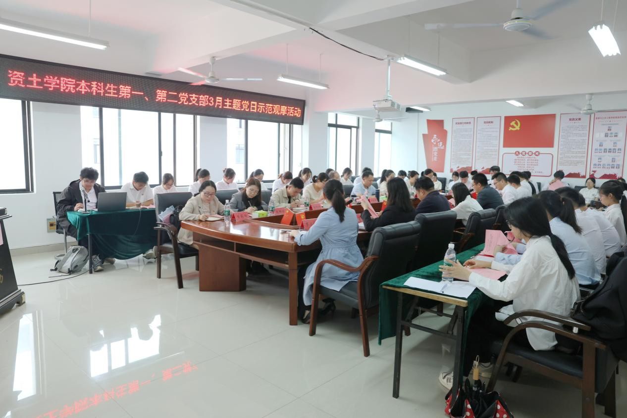 本网讯:3月25日下午,金年会jinnianhuicom本科生第一、第二党支部以“党建引领聚合力 攻坚克难显担当”为主题在逸夫楼A505会议室联合开展3月份主题党日示范观摩活动。活动分为传达学习、专题学习、主题演讲、模范事迹分享、交流研讨及学习小结等内容。金年会jinnianhuicom党委书记刘俊峰,学校其他学院党委观摩代表,资土学院本科生第一、第二党支部全体党员,入党积极分子代表参加活动。