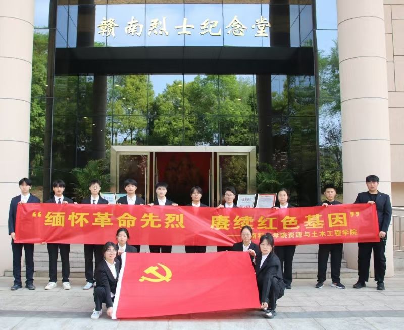 当天下午,20余名学生党员、团员代表前往赣州市天竺山革命烈士陵园现场祭奠。同学们在烈士墓前集体默哀,怀着无比崇敬的心情向革命先烈敬献花篮,以表对革命先烈深切的缅怀之情和青年矢志报国之志。随后,学生党员、团员们瞻仰烈士英名墙,走进赣南烈士纪念堂,面对满墙烈士英名、张张历史照片,同学们驻足停留,通过誊抄烈士事迹,回顾革命岁月,铭记革命先烈,感受那段历史的厚重与荣光。