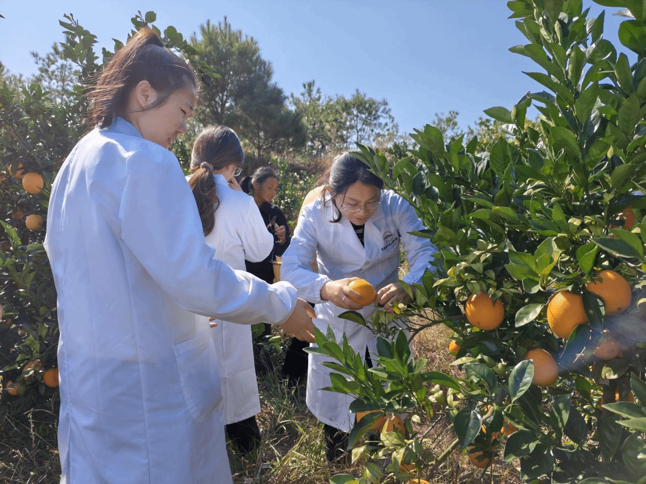 食品安全教研室的教师们也深入果园田间地头,实地查看脐橙果树的生长周期、挂果密度,仔细检查叶片、果实的健康状况,详细询问果农在施肥、用药、灌溉等环节的操作流程,指导果农科学选择低毒、高效、易降解的农药,传授精准用药剂量与安全间隔期控制技巧,避免农药滥用导致的食品安全风险,帮助果农树立 “质量为先、安全第一” 的种植理念。