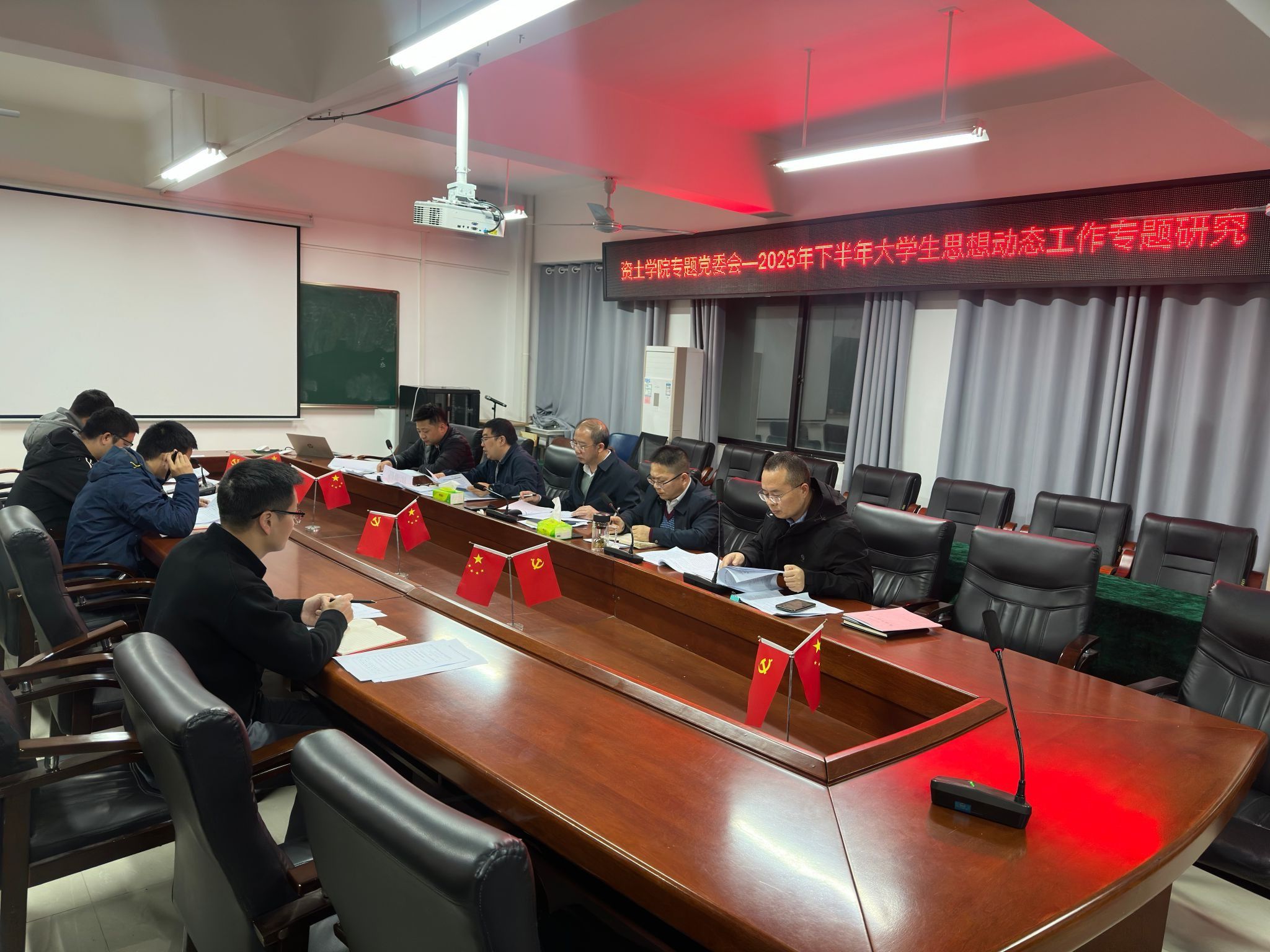 本网讯:12月2日,金年会jinnianhuicom在逸夫楼A505召开2025年下半年思想政治教育工作专题党委会,深入研判学院思政工作新形势,部署全年重点任务。金年会jinnianhuicom党委书记刘俊峰主持并讲话,党委委员、副院长卢志刚,党委委员、副院长杨靖,党委委员、教学科研办公室主任代靖怡,党委委员、学生工作办公室主任涂黎明,各党支部书记及科级以上干部参会。