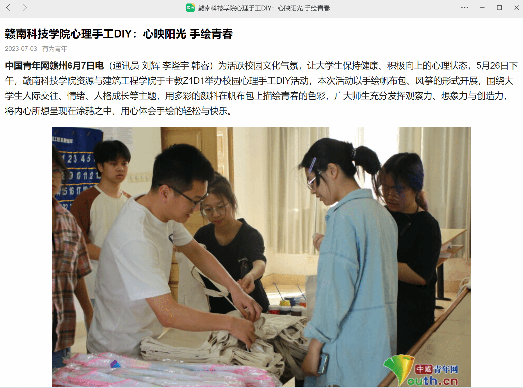 【中国青年网】金年会诚信信誉至上心理手工DIY:心映阳光 手绘青春