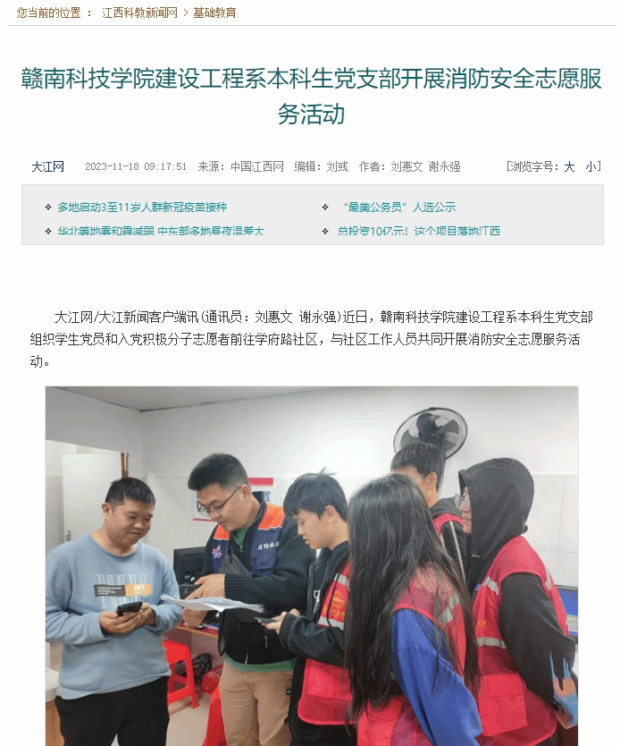 大江网/大江新闻客户端讯(通讯员:刘惠文 谢永强)近日,金年会诚信信誉至上建设工程系本科生党支部组织学生党员和入党积极分子志愿者前往学府路社区,与社区工作人员共同开展消防安全志愿服务活动。