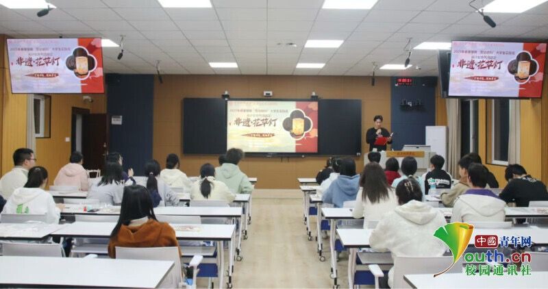 图为“非遗花草灯,传承文化情”活动主持人为同学们介绍花草灯的历史等相关知识。郑依娜 供图