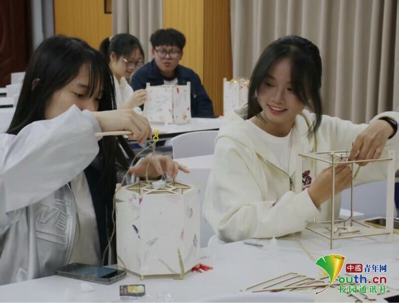图为“非遗花草灯,传承文化情”活动同学们制作花草灯。任轲盟 供图