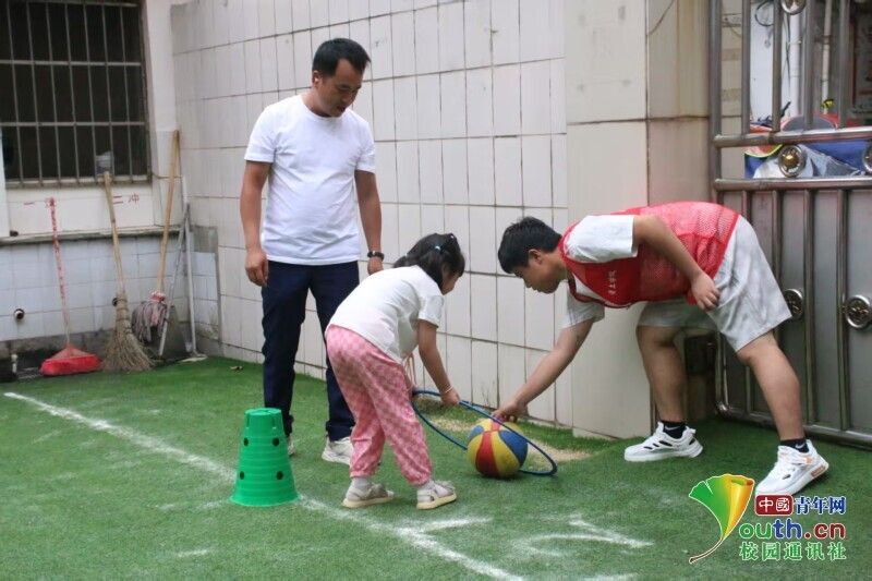 图为志愿者协助孩子们完成传球接力游戏。李志博 供图