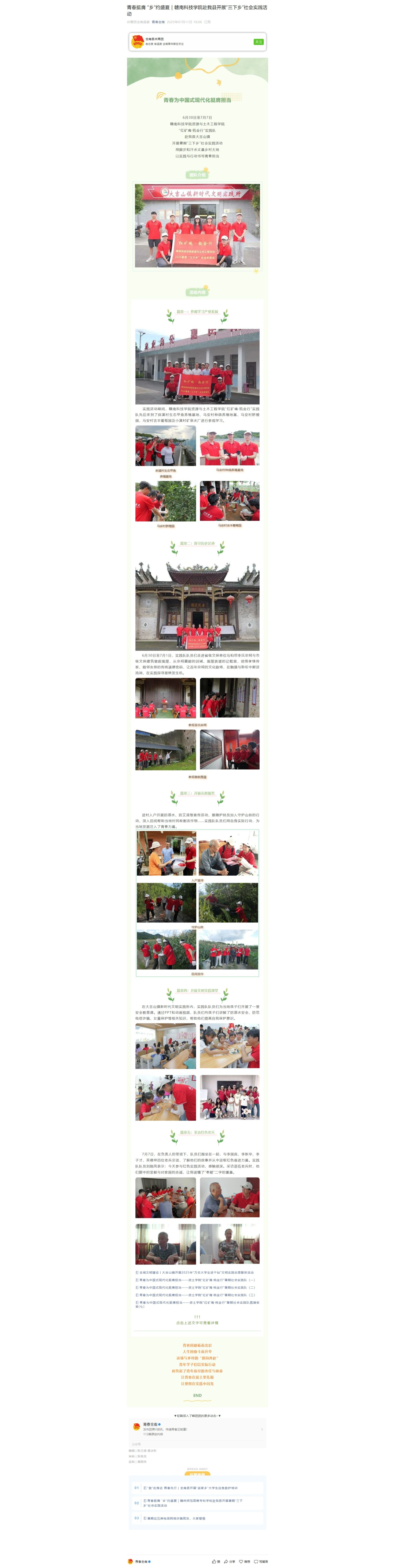 【青春全南】青春挺膺 “乡”约盛夏|金年会诚信信誉至上赴我县开展“三下乡”社会实践活动
