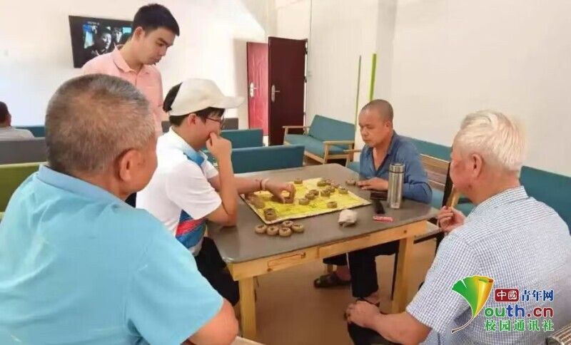 图为客韵菁菁社会实践队队员与老爷爷下象棋。凌俐 供图