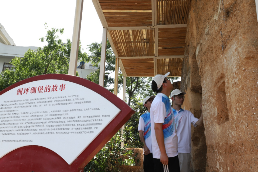 队员们踏入洲坪碉堡,注视、抚摸残迹,仿佛看见赣南苏区客家人,借夜色冲破封锁,为送药护资浴血拼杀。硝烟虽远,客家儿女抗战身影仍烙进队员们心间。小小的洲坪雕堡,留下了苏区革命英雄们英勇而光荣的战斗足迹,成为了赣县苏区红军第二次反围剿胜利的见证。每道裂缝、每块砖石,都将保家卫国的热血身姿与红色故事,悄然传承一代又一代。