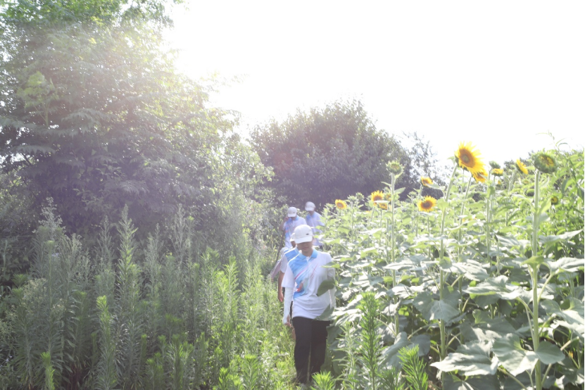 “客韵菁菁”实践队调研向日葵基地,见证客家人响应乡村振兴号召,在红色土地上开辟出千亩花田。金灿灿的花盘始终朝着阳光,恰似客家儿女向上奋进的姿态。