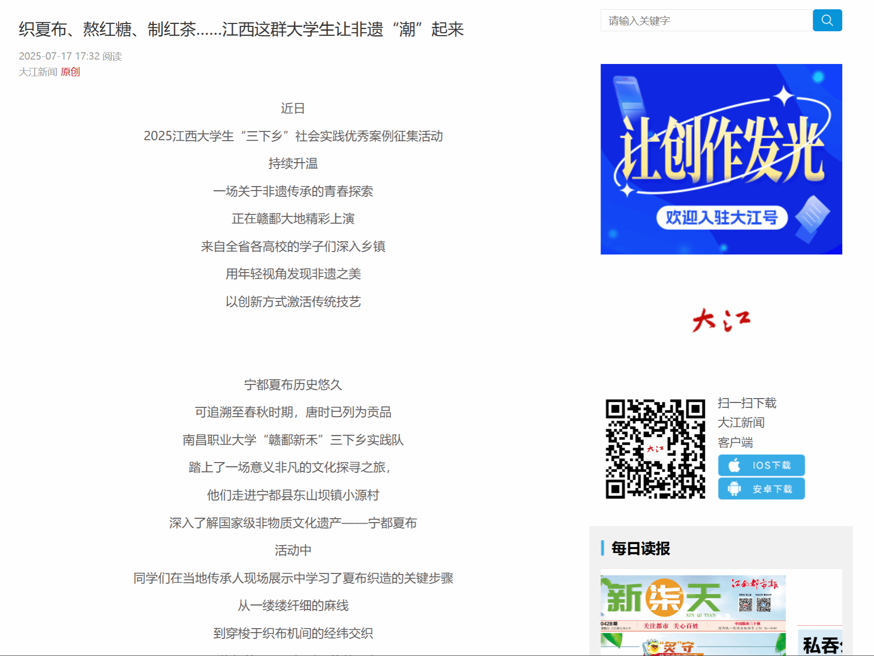 2025江西大学生“三下乡”社会实践优秀案例征集活动