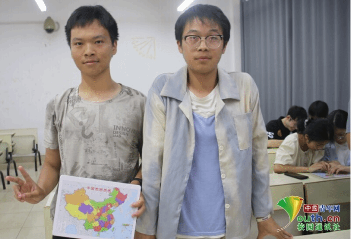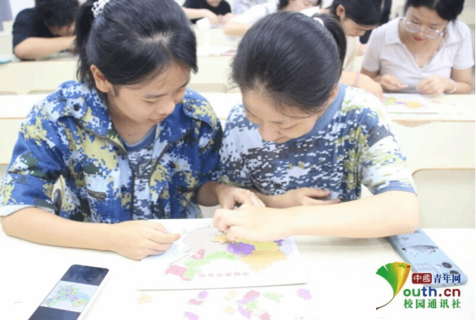 图为同学们展示拼凑完整的中国地图,分享喜悦情感。李晓玲 郑吉如 供图