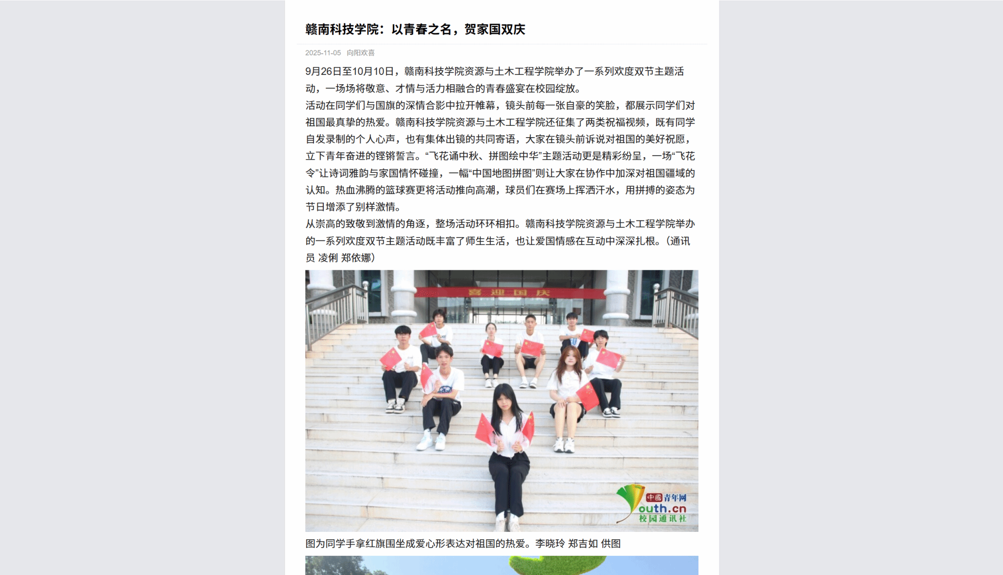 媒体链接:https://xiaoyuan.cycnet.com.cn/s?uid=8325593&app_version=1.6.2&sid=1656916&time=1762913978&signature=xZry0KPXd5RYDQVznvq4vEErPu9BjdG1GlE6go9mAJkeON2wjW&sign=7504b1625a79eee245dc05466fb8929c