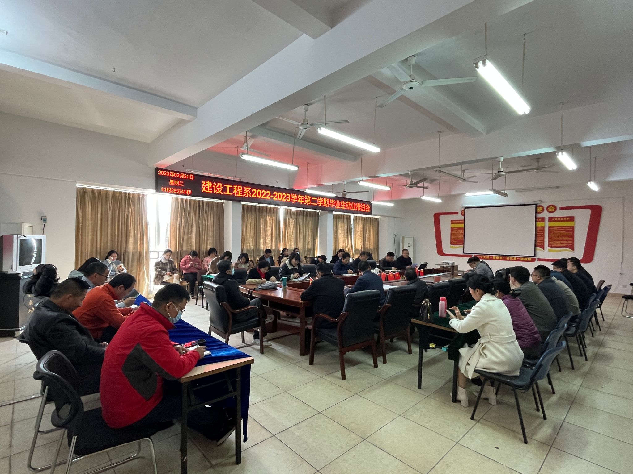 本网讯:为切实做好毕业生就业工作,2月21日下午,建设工程系于主教Z713会议室举行2023届毕业生就业推进会。各辅导员及班主任参与本次会议。