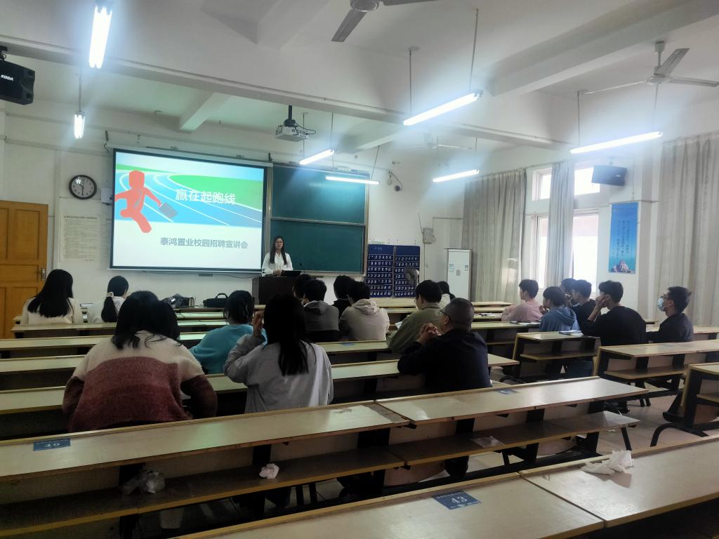 本网讯:为了做好毕业生就业工作,对毕业生的就业进行进一步的指导与帮助。建设工程系于11月3号上午在主教Z1D1举行泰鸿置业校园招聘宣讲会,宣讲会由泰鸿置业公司李经理主持。