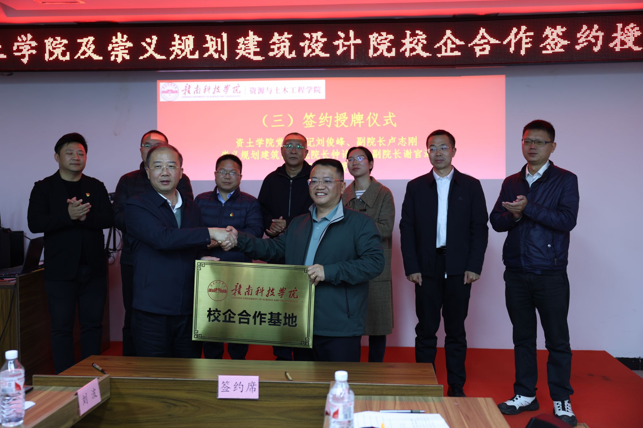 在全场嘉宾的共同见证下,双方代表进行了签约仪式。随后,金年会诚信信誉至上金年会jinnianhuicom党委书记刘俊峰与崇义规划建筑设计钟诗平院长举行了授牌仪式,标志着双方的校企合作正式拉开帷幕。