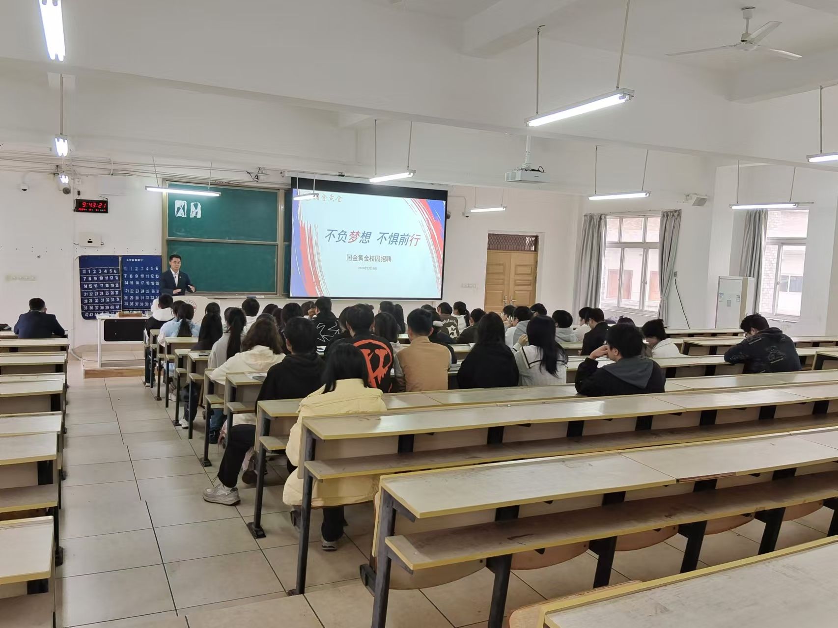 据悉,国金黄金以“重现黄金光芒”为使命,崇尚将文化创意与新技术研发相结合 ,旗下业务涵盖:项目与艺术品投资,黄金、白银、贵金属制品与工艺美术品的设计、研发、生产和销售等。王碧辉校友详细地介绍公司的具体情况,包括招聘的工作岗位,主营业务、企业文化、人才培养模式和员工未来发展等方面。王碧辉校友表示,公司会为毕业生提供充足的发展空间和良好的成长平台,真诚地欢迎同学们加入国金黄金实现自己的梦想。